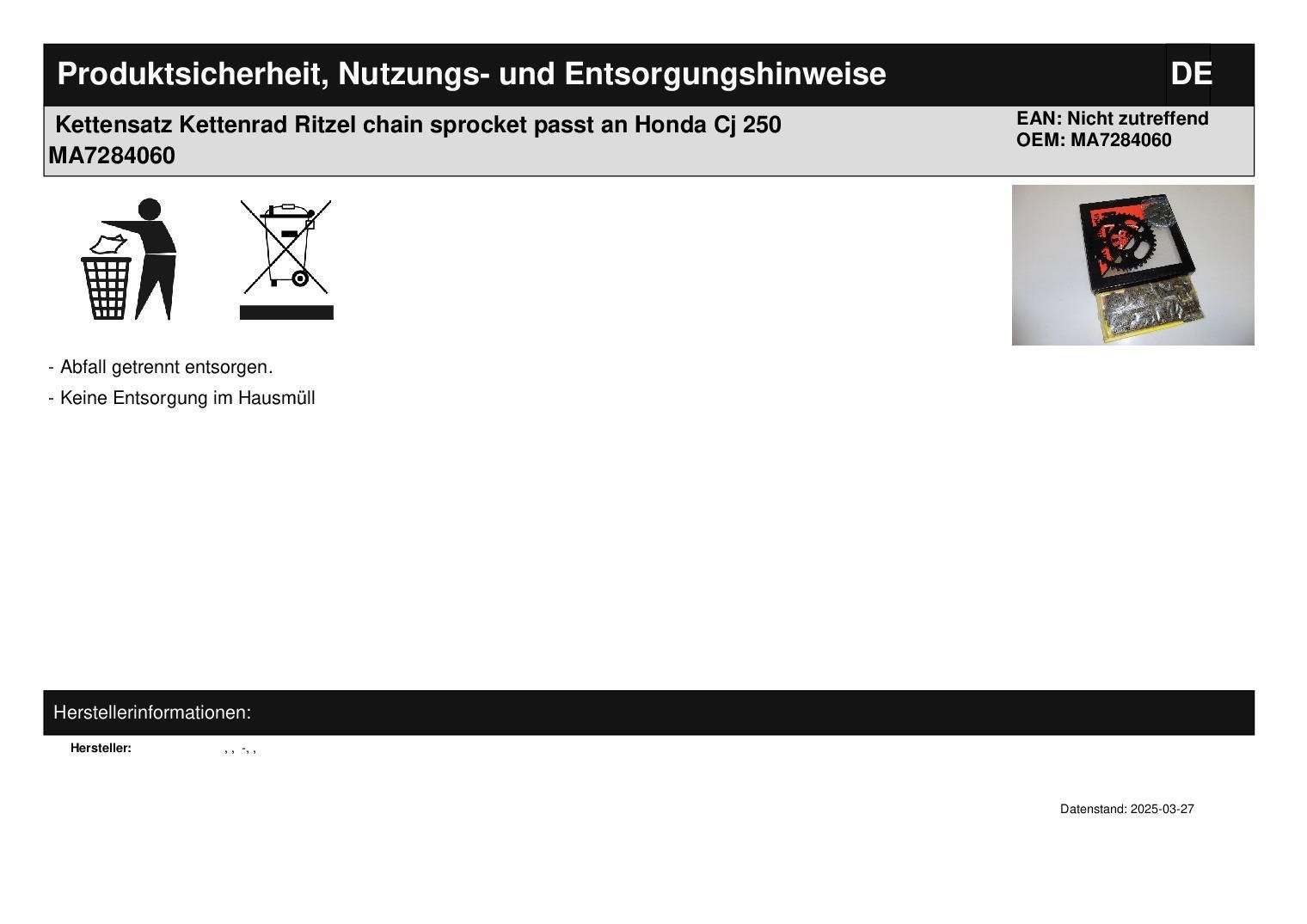 Kettensatz Kettenrad Ritzel chain sprocket passt an Honda Cj 250 MA7284060