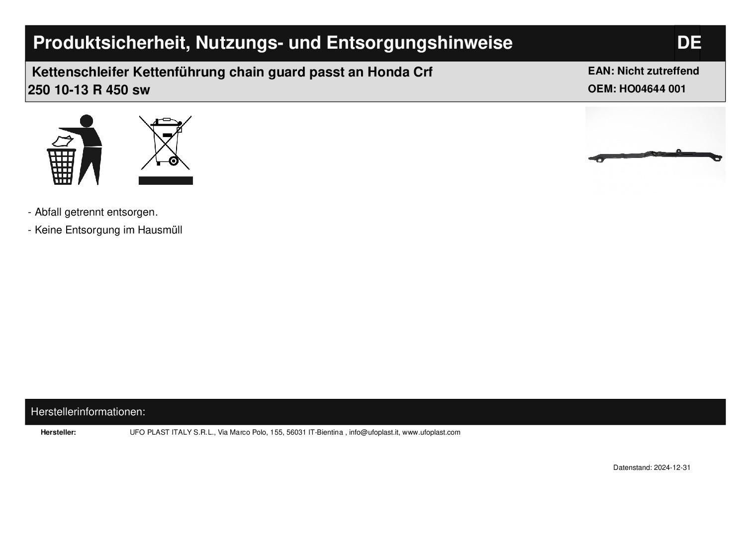 Kettenschleifer Kettenführung chain guard passt an Honda Crf 250 10-13 R 450 sw