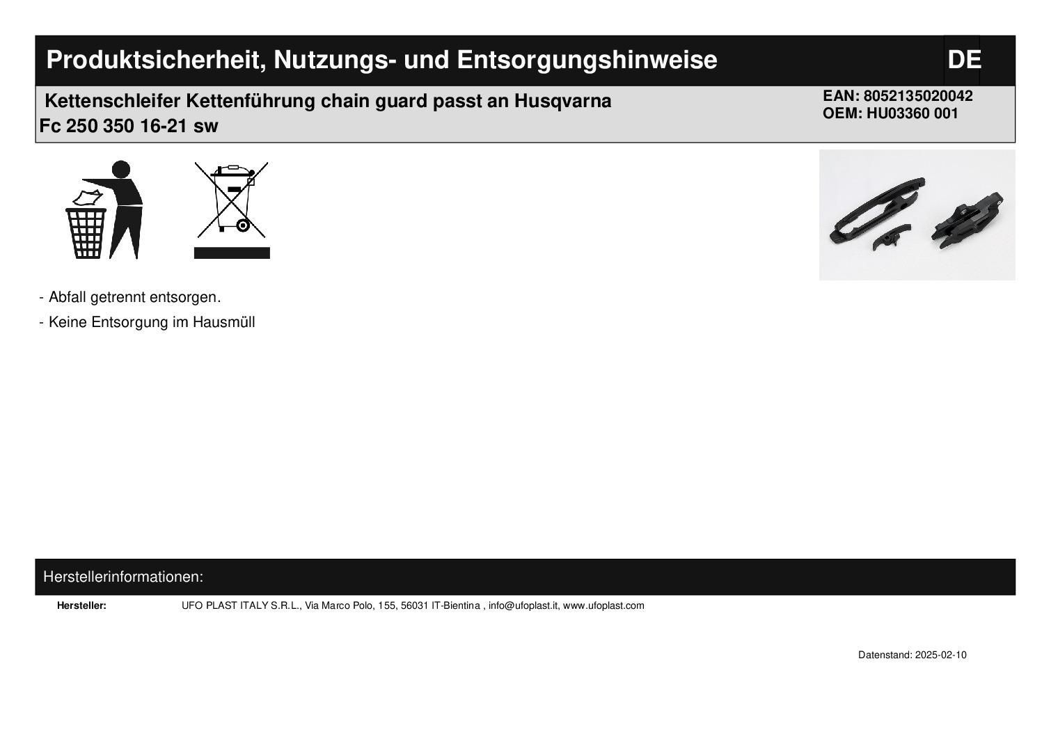 Kettenschleifer Kettenführung chain guard passt an Husqvarna Fc 250 350 16-21 sw
