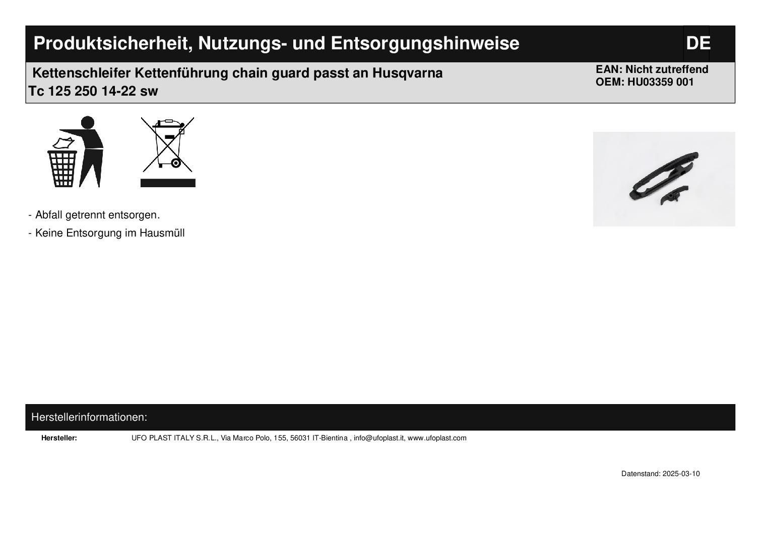 Kettenschleifer Kettenführung chain guard passt an Husqvarna Tc 125 250 14-22 sw