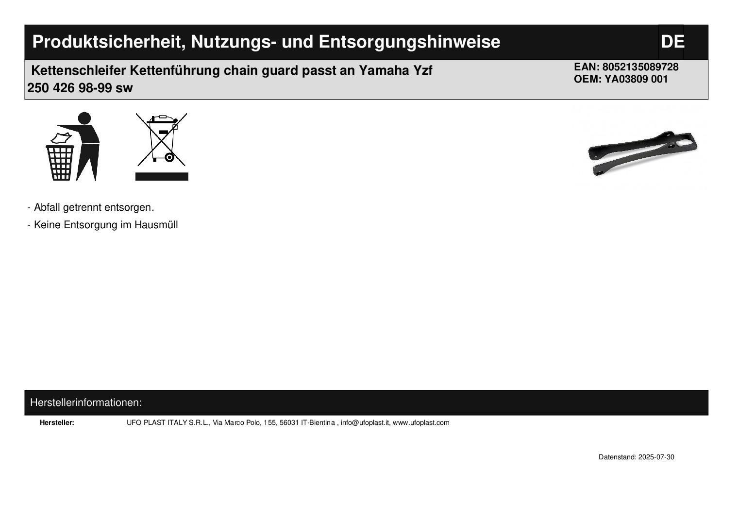 Kettenschleifer Kettenführung chain guard passt an Yamaha Yzf 250 426 98-99 sw