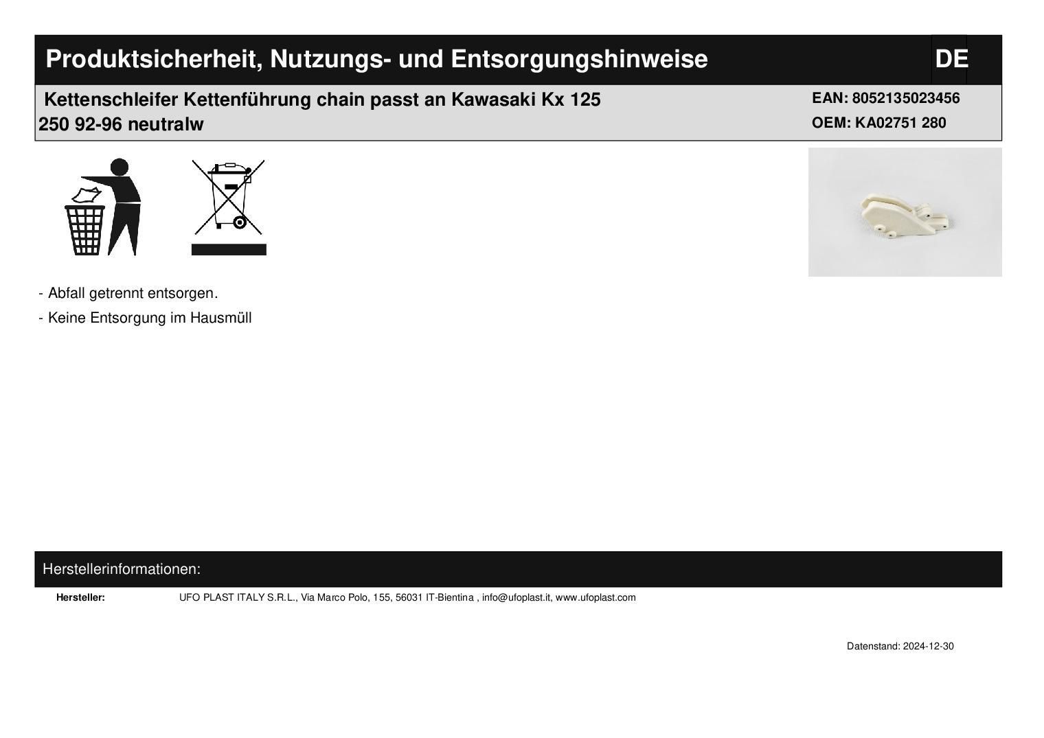 Kettenschleifer Kettenführung chain passt an Kawasaki Kx 125 250 92-96 neutralw