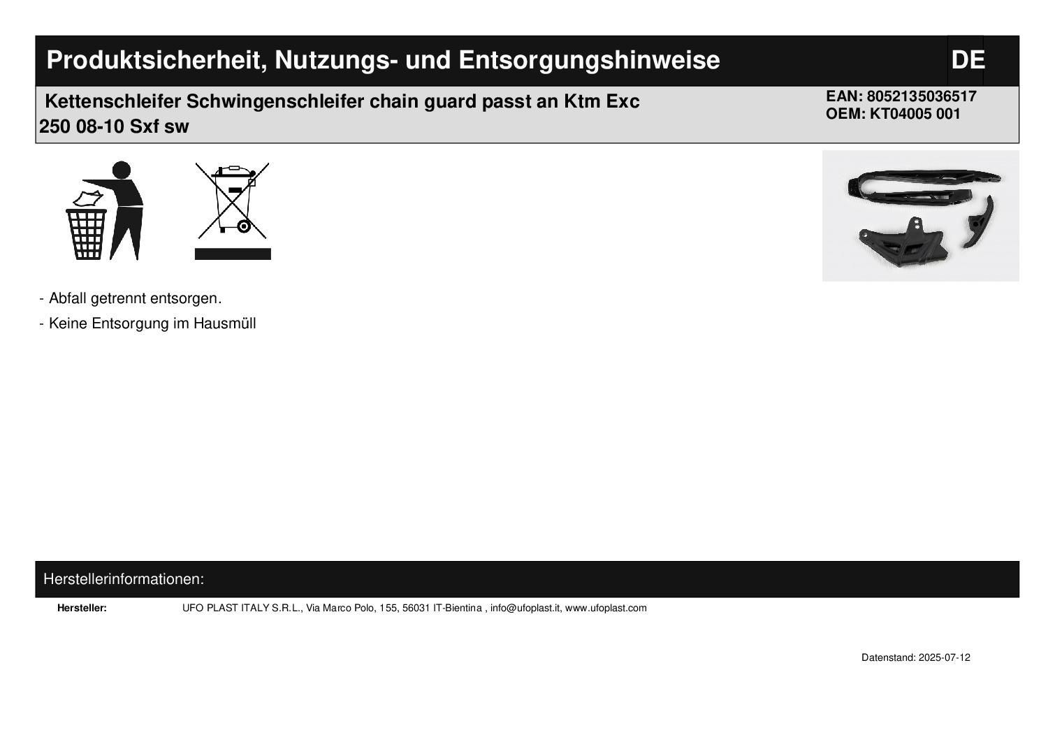 Kettenschleifer Schwingenschleifer chain guard passt an Ktm Exc 250 08-10 Sxf sw
