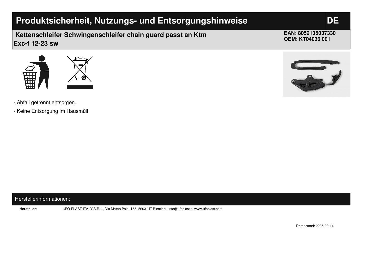 Kettenschleifer Schwingenschleifer chain guard passt an Ktm Exc-f 12-23 sw