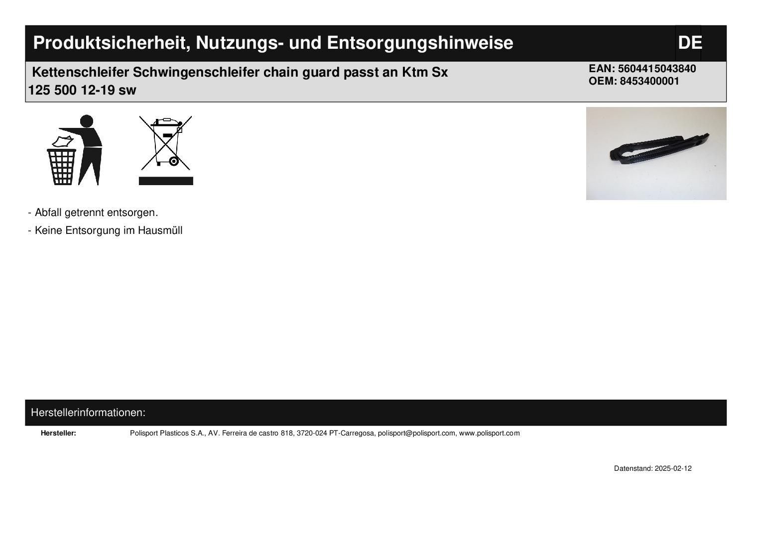 Polisport Kettenschleifer Schwingenschleifer chain guard passt an Ktm Sx 125 500 12-19 sw