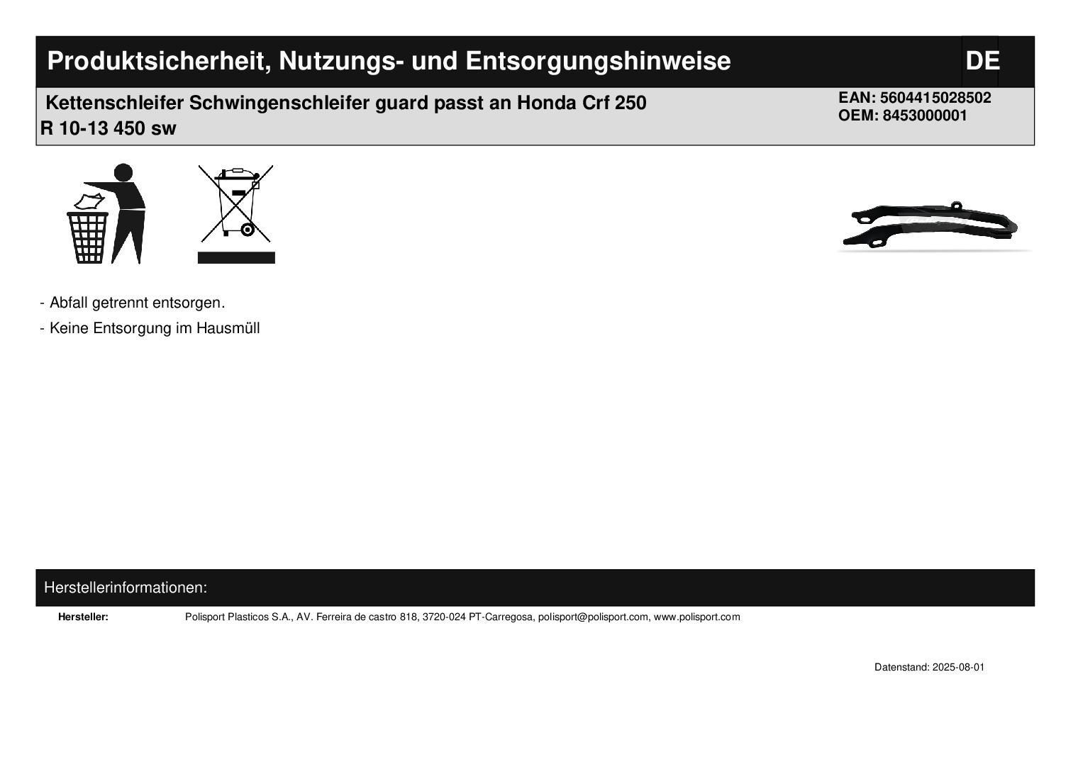 Kettenschleifer Schwingenschleifer guard passt an Honda Crf 250 R 10-13 450 sw