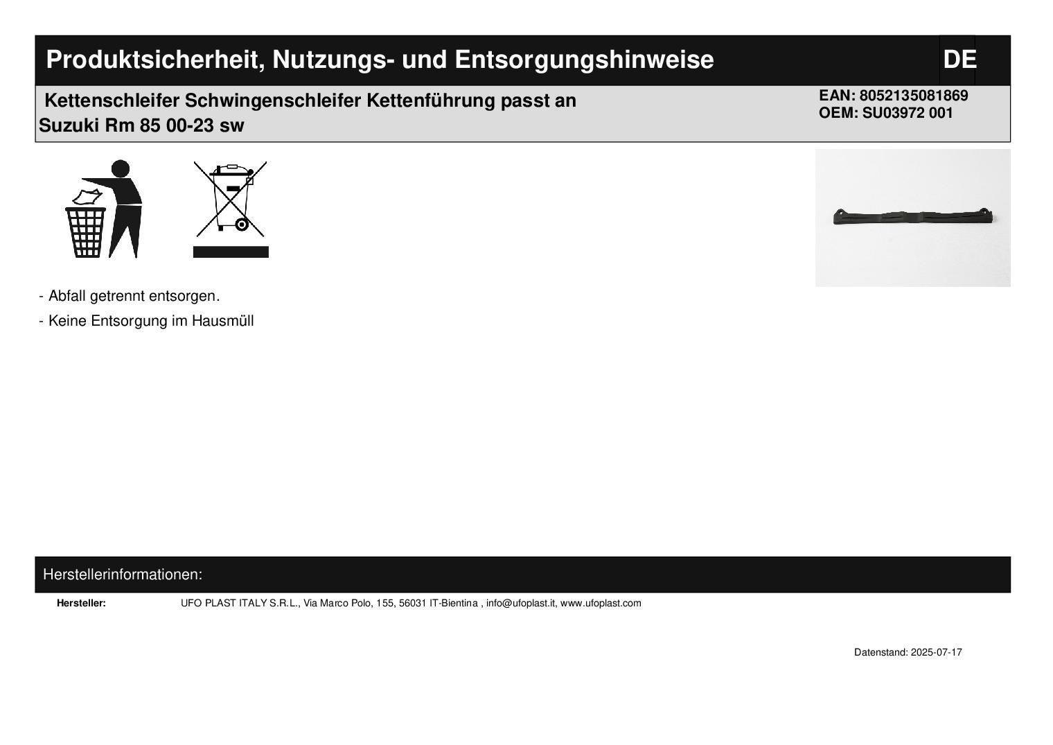 Kettenschleifer Schwingenschleifer Kettenführung passt an Suzuki Rm 85 00-23 sw