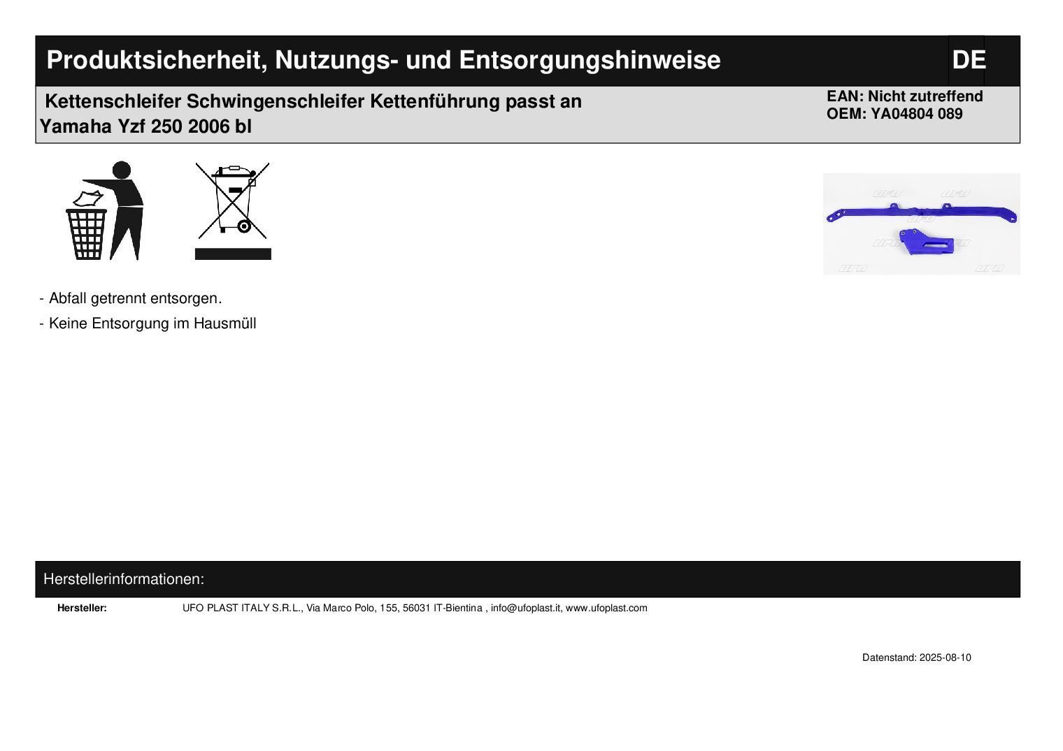 Kettenschleifer Schwingenschleifer Kettenführung passt an Yamaha Yzf 250 2006 bl
