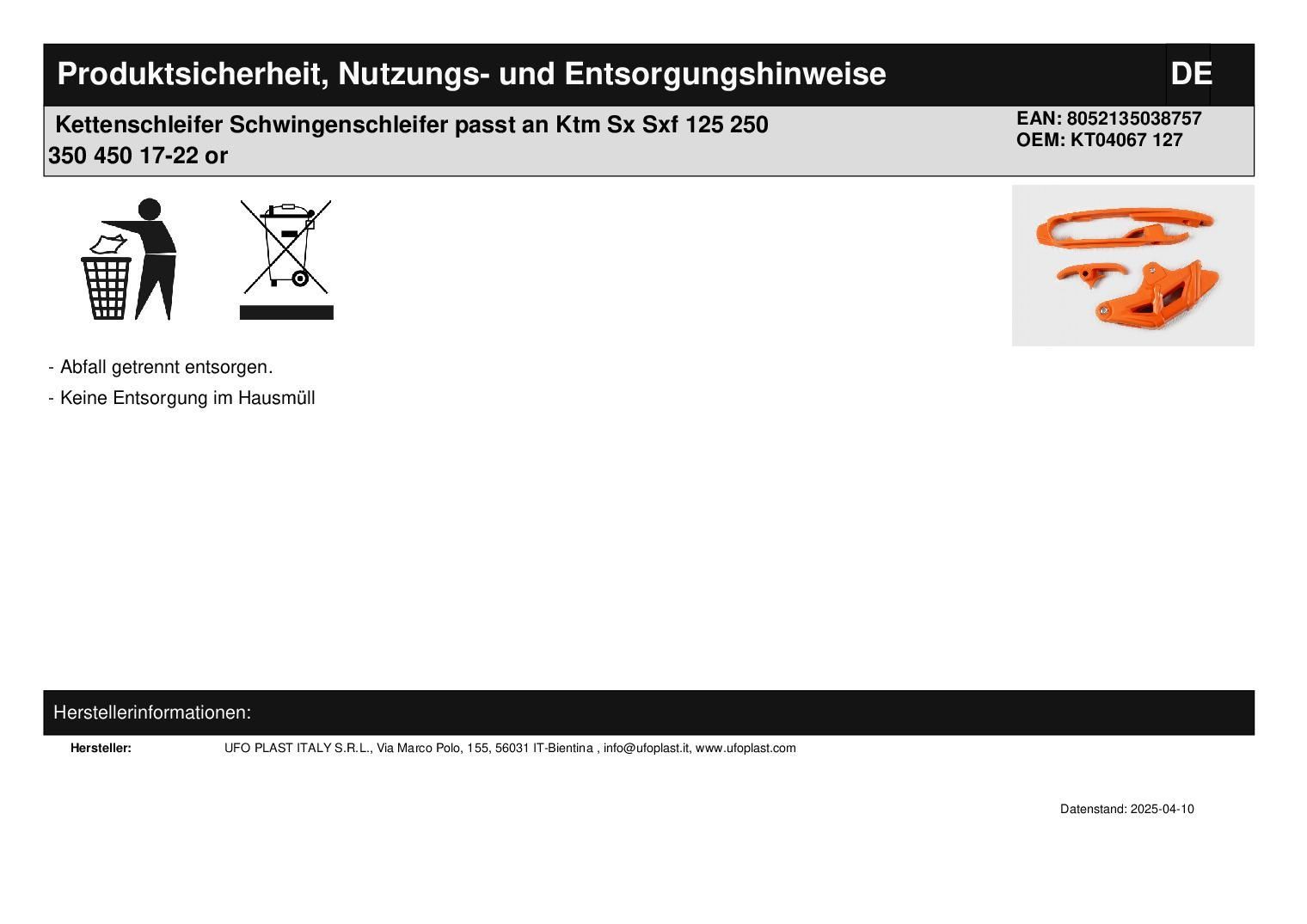 Kettenschleifer Schwingenschleifer passt an Ktm Sx Sxf 125 250 350 450 17-22 or
