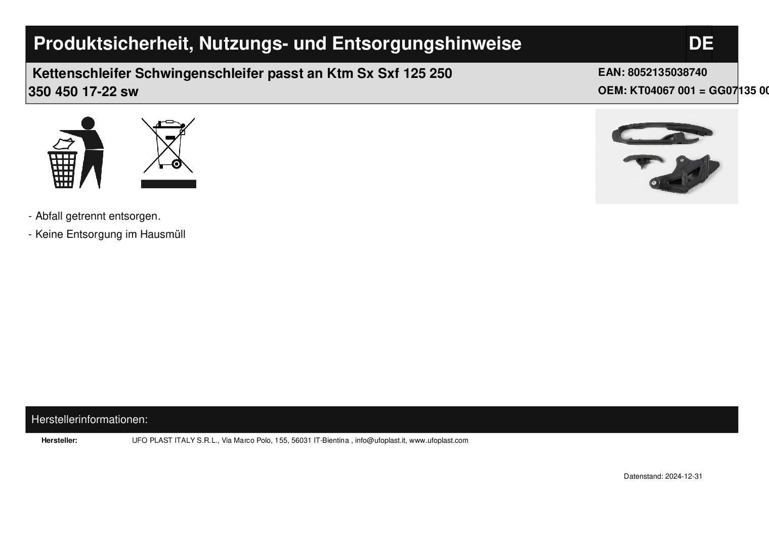 Kettenschleifer Schwingenschleifer passt an Ktm Sx Sxf 125 250 350 450 17-22 sw