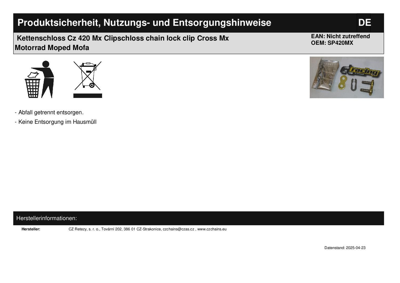 Kettenschloss Cz 420 Mx Clipschloss chain lock clip Cross Mx Motorrad Moped Mofa