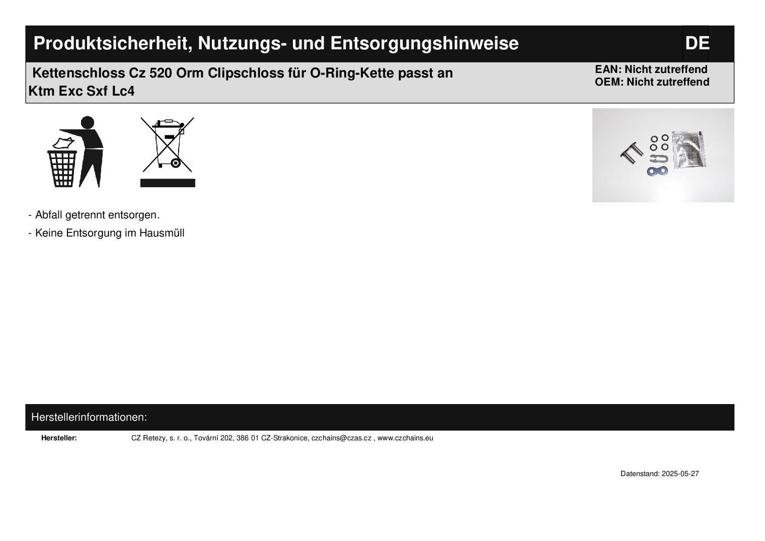 Kettenschloss Cz 520 Orm Clipschloss für O-Ring-Kette passt an Ktm Exc Sxf Lc4