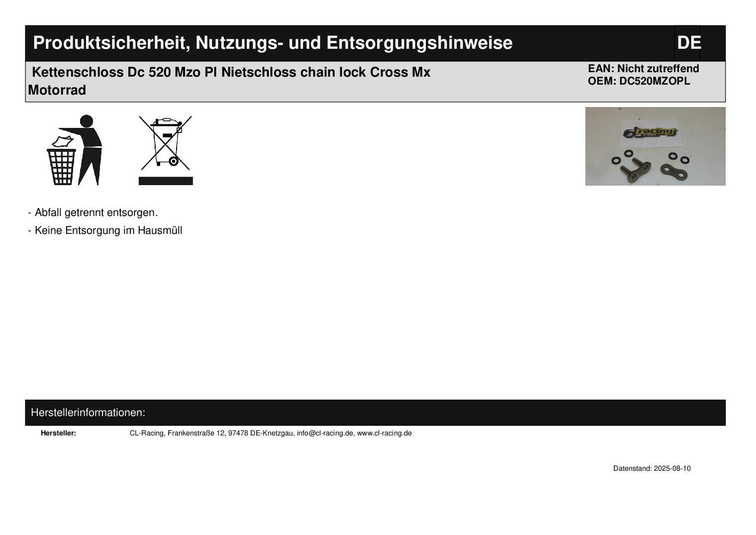 Kettenschloss Dc 520 Mzo Pl Nietschloss chain lock Cross Mx Motorrad