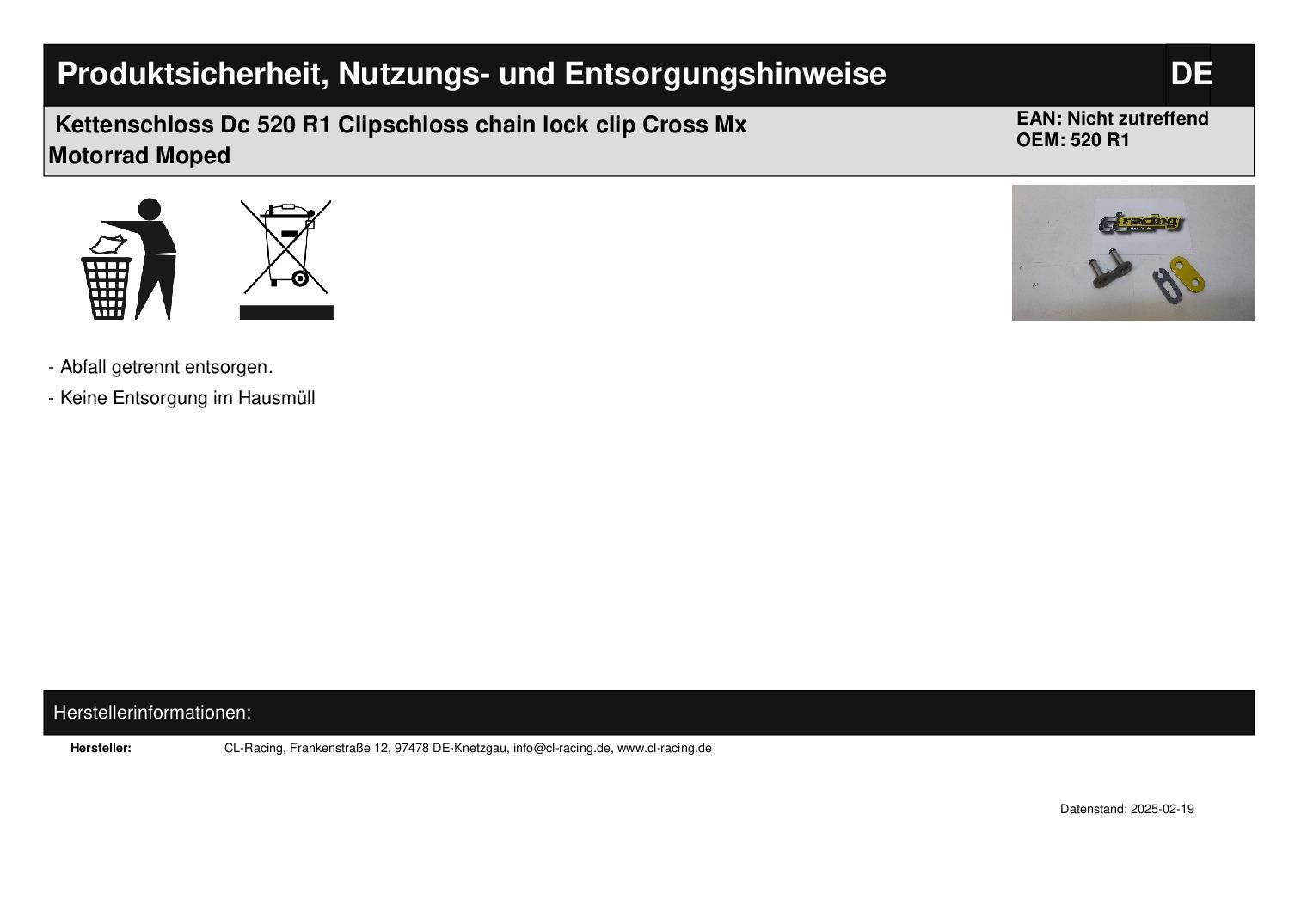 Kettenschloss Dc 520 R1 Clipschloss chain lock clip Cross Mx Motorrad Moped