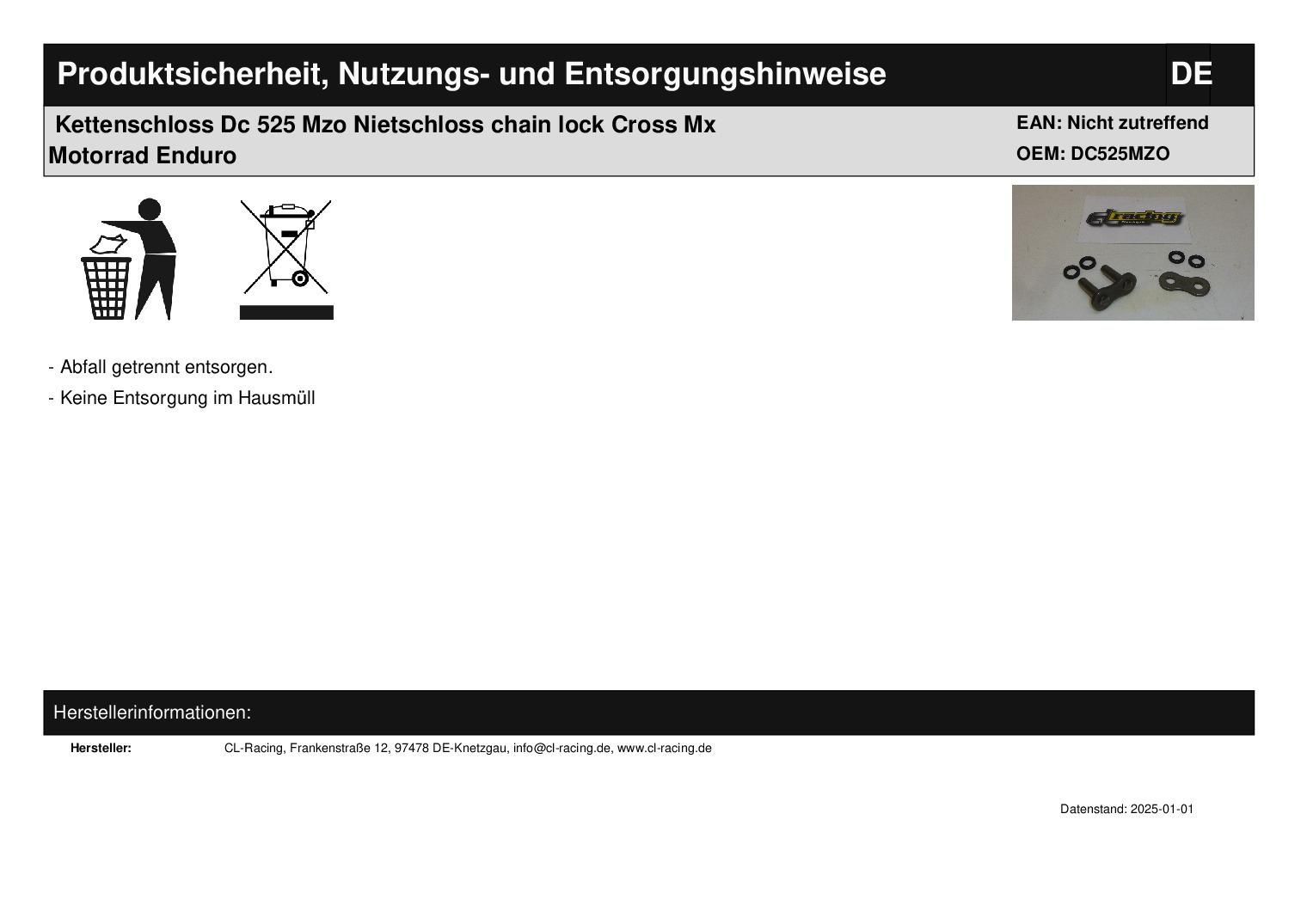 Kettenschloss Dc 525 Mzo Nietschloss chain lock Cross Mx Motorrad Enduro