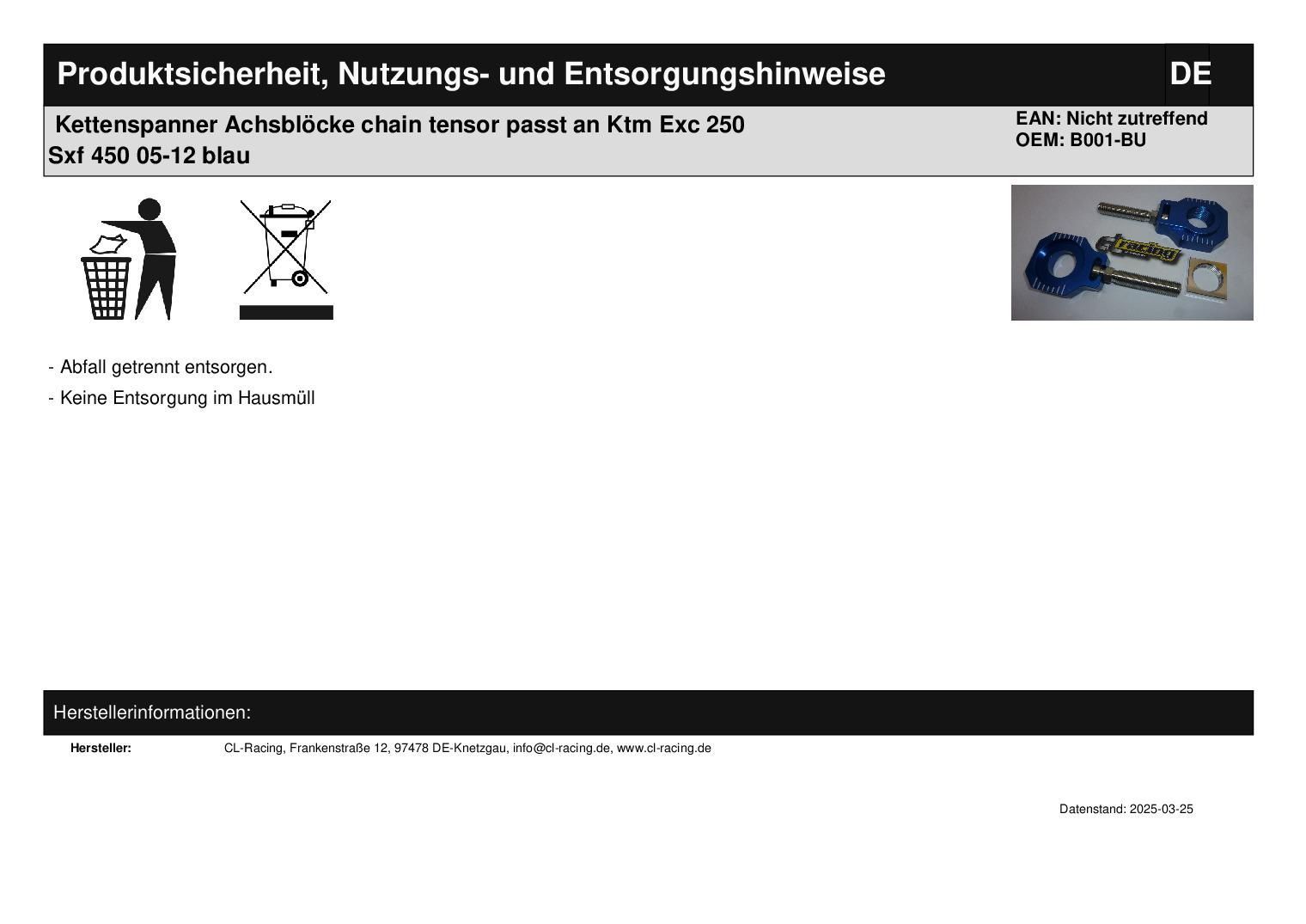 Kettenspanner Achsblöcke chain tensor passt an Ktm Exc 250 Sxf 450 05-12 blau In dieser Auktion gibt es folgenden Artikel zu kaufen: Kettenspanner (siehe Foto) Modell: passend für Ktm EXC 125 Bj.: 05 - 12 EXC 200 Bj.: 05 - 12 EXC 250 Bj.: 05 - 12 EXC 300 Bj.: 05 - 12 EXC 400 Bj.: 05 - 12 EXC 450 Bj.