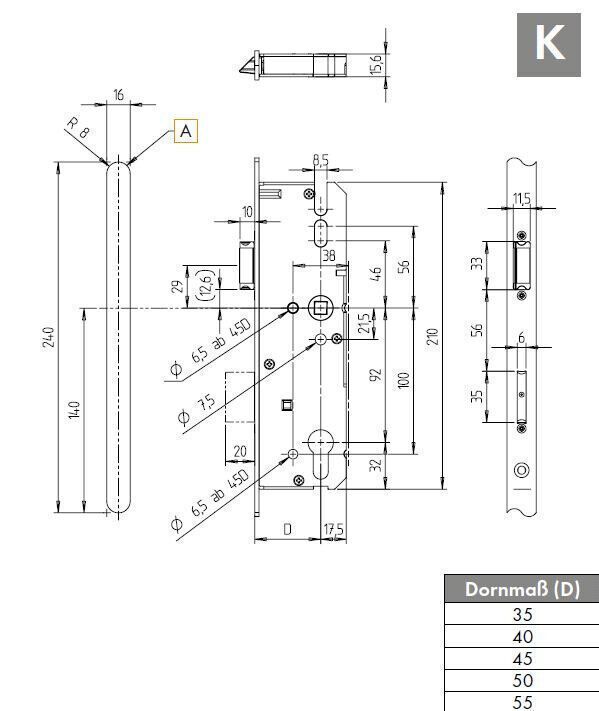 KFV Schlosskasten Reparaturschloss Hauptschloss für Mehrfachverriegelung 8mm Nuß