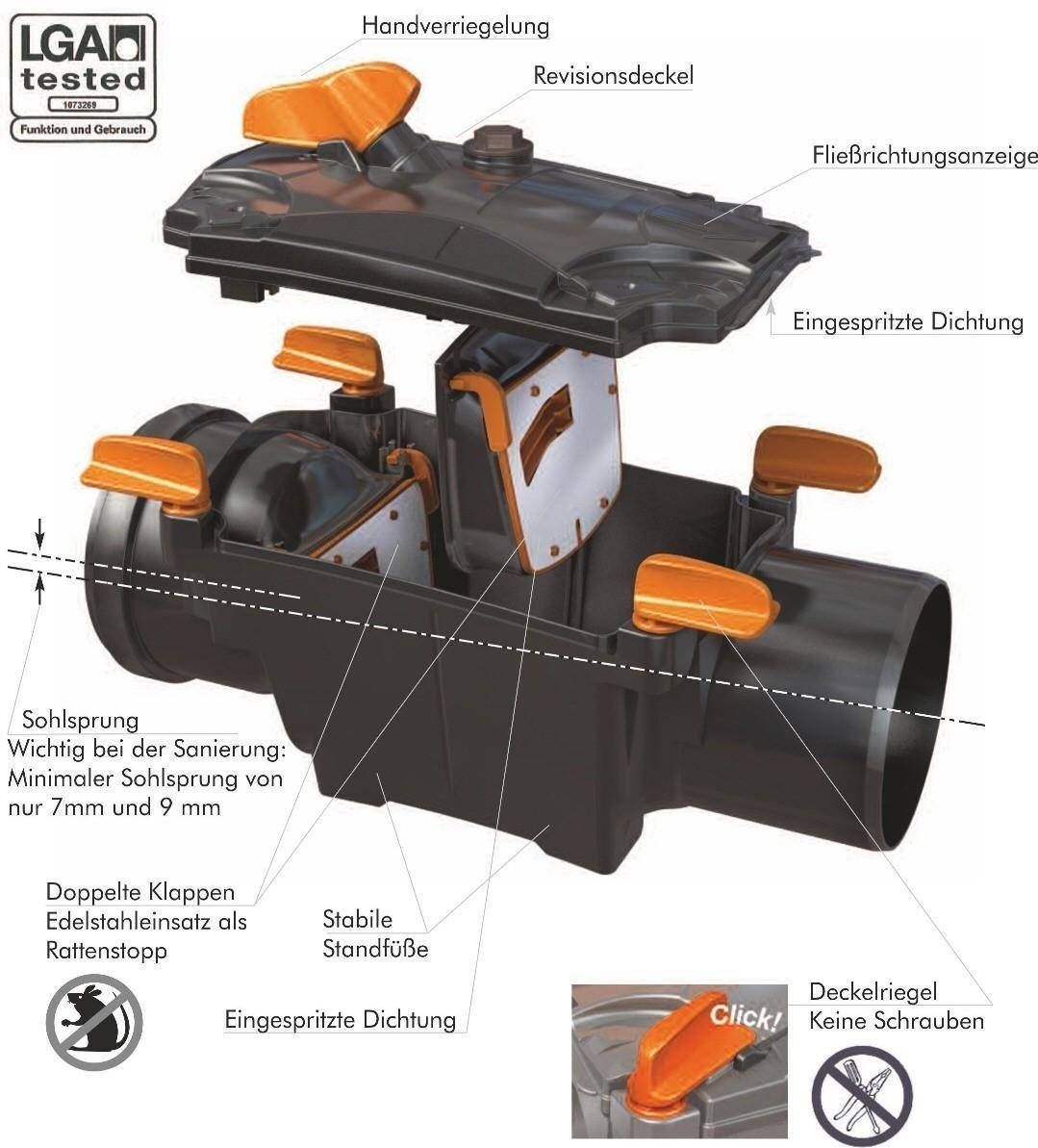 MARLEY KG Doppel Rückstau Verschluß Marley Edelstahl Ausf: DN 100/110