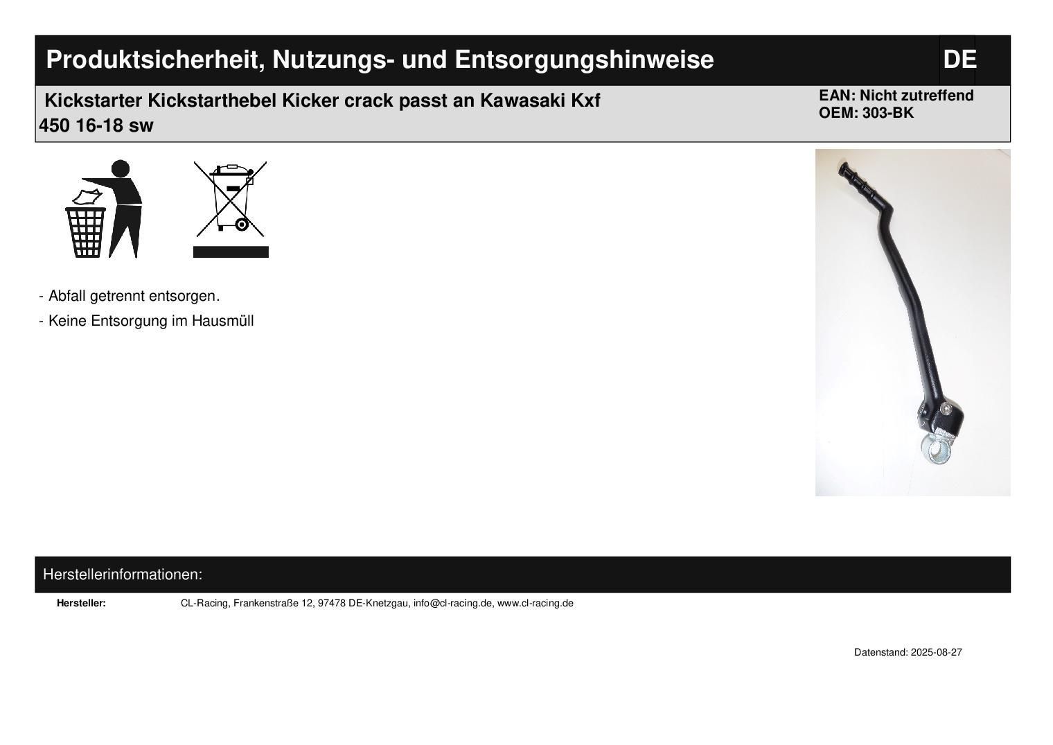 Kickstarter Kickstarthebel Kicker crack passt an Kawasaki Kxf 450 16-18 sw In dieser Auktion gibt es folgenden Artikel zu kaufen: Kickstarter (siehe Foto) Modell: passend für Kawasaki Kxf 450 Bj.: 16 - 18 (4-Takt) Lieferumfang: 1 Stück Artikelzustand: neu Es handelt sich hierbei um kein Originalteil