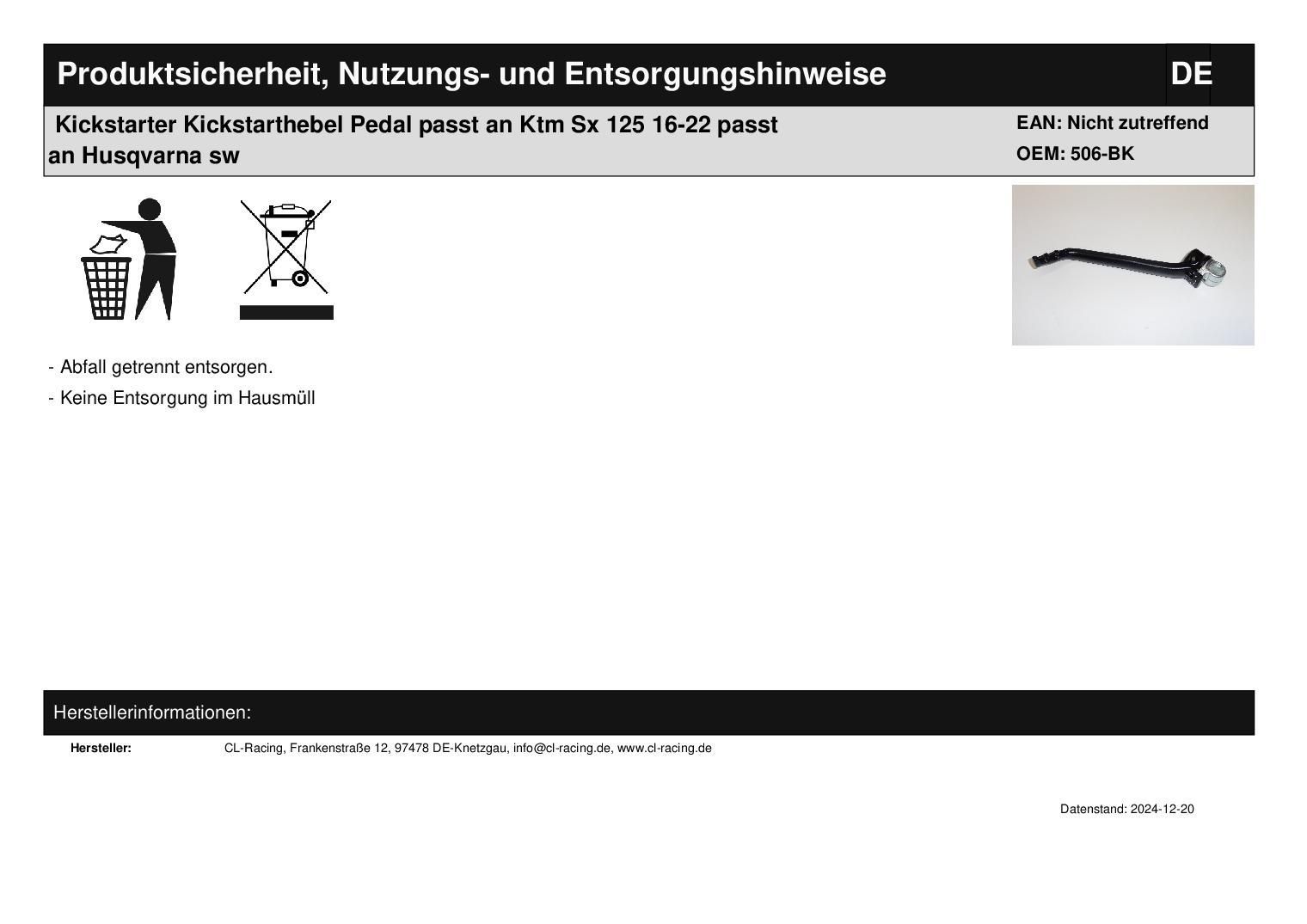 Kickstarter Kickstarthebel Pedal passt an Ktm Sx 125 16-22 passt an Husqvarna sw In dieser Auktion gibt es folgenden Artikel zu kaufen: Kickstarter (siehe Foto) Modell: passend für Ktm SX 125, 150 Bj.: 16 - 22 XC-W 125, 150 Bj.: 17 - 22 passend für Husqvarna TC 125 Bj.: 16 - 22 TX 125 Bj.: 17 - 22 T