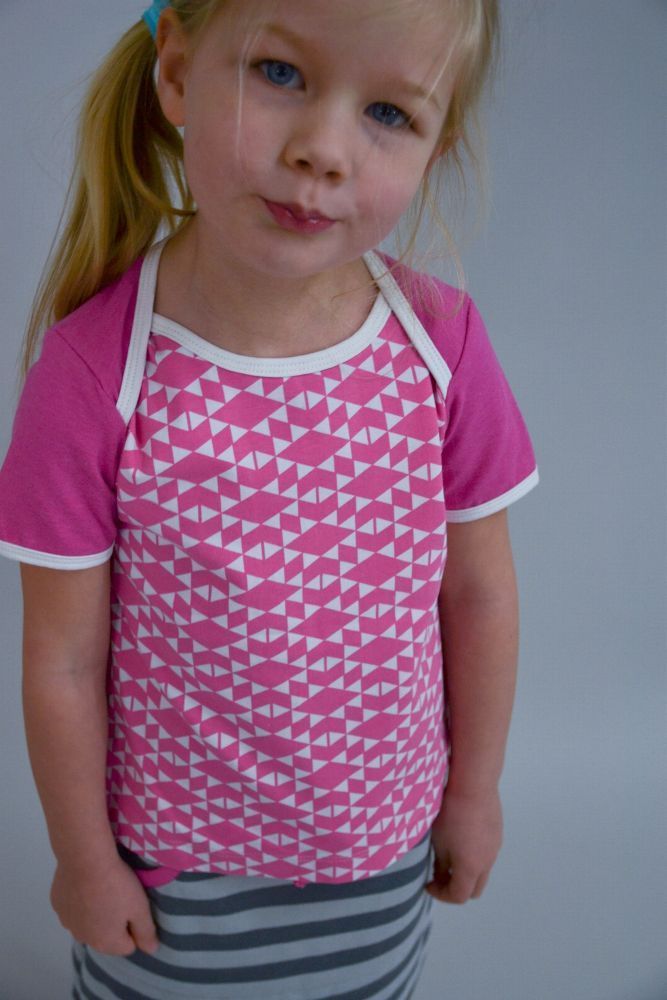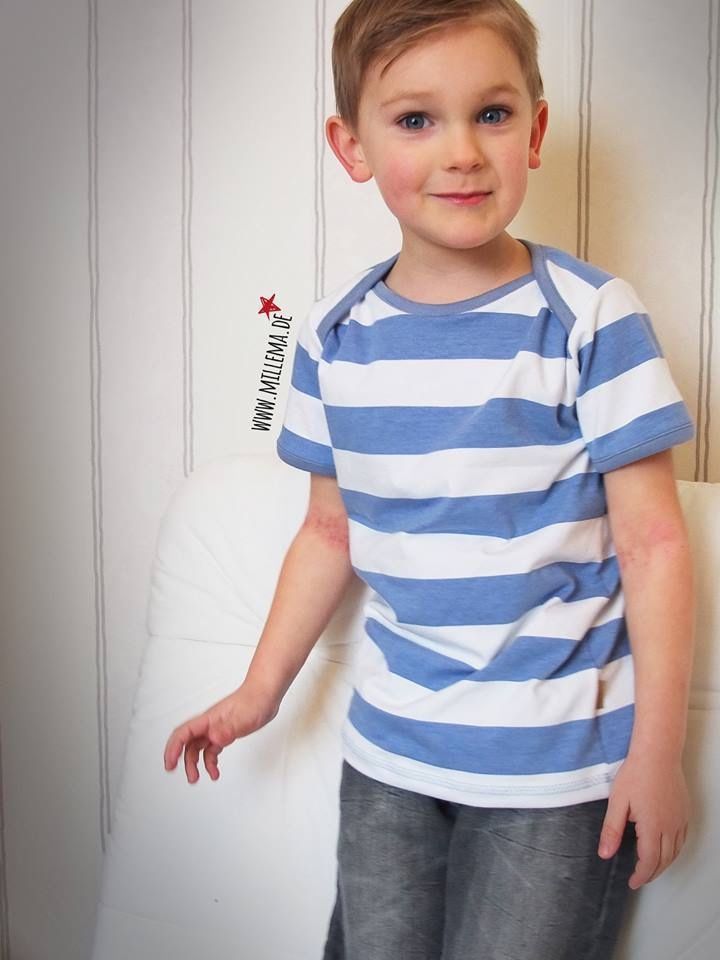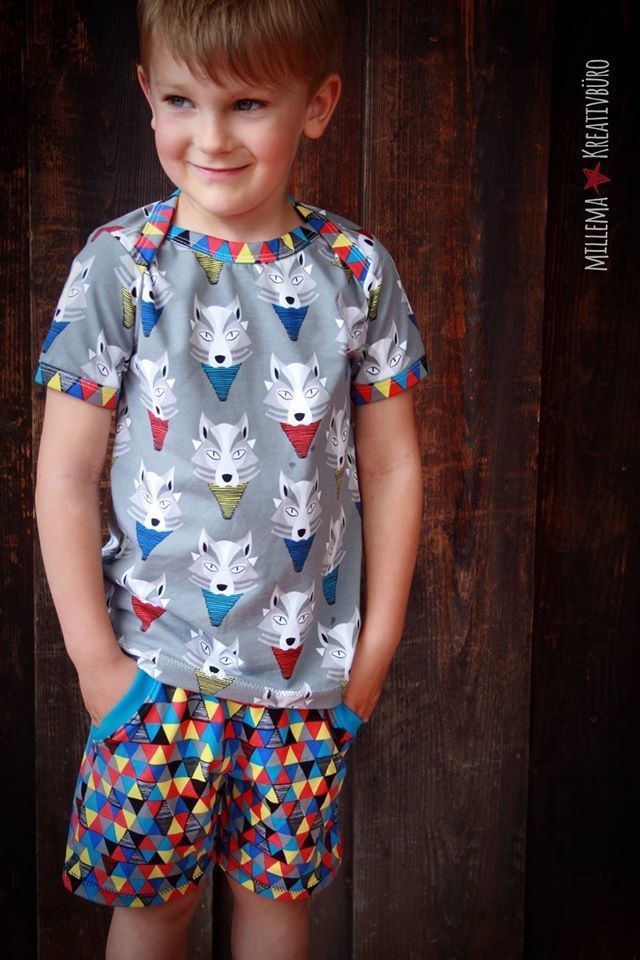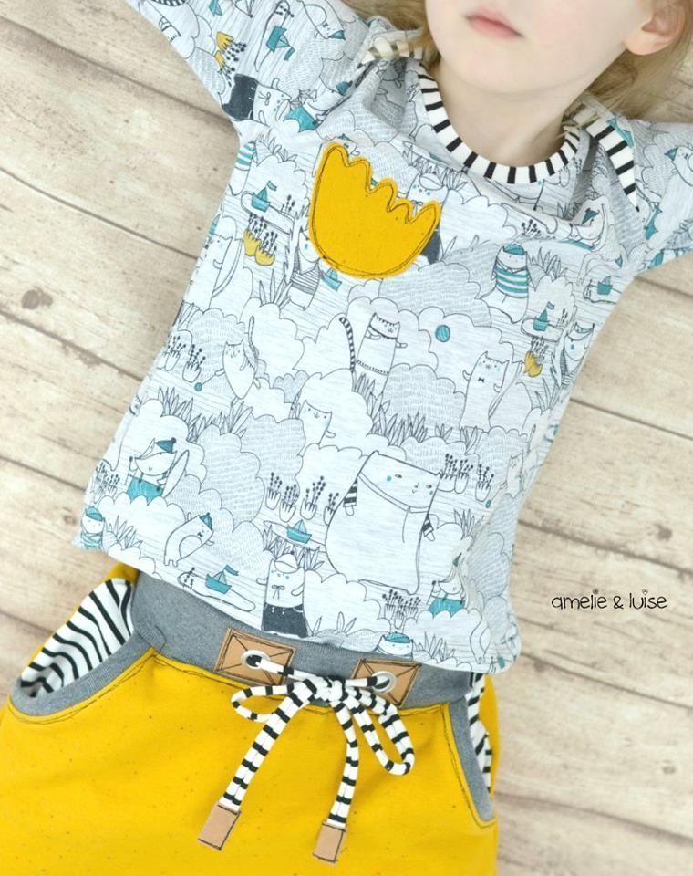 Basic-Shirt-Kids ist ein Papierschnittmuster mit tollem Anleitungs-Booklet für ein schmal geschnittenes Jersey-Shirt mit amerikanischem Ausschnitt in zwei Versionen: Die Girls-Version ist leicht tailliert mit einem abgerundeten Saum, die Boys-Version ist gerade und etwas weiter geschnitten mit einem