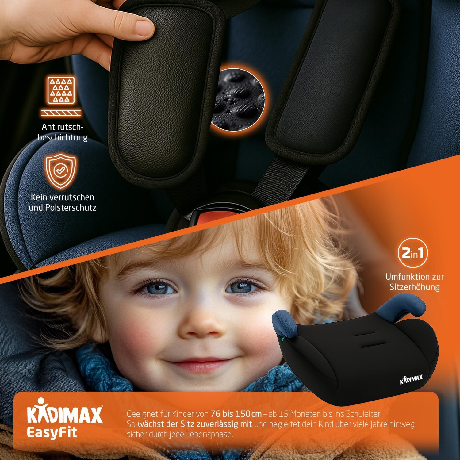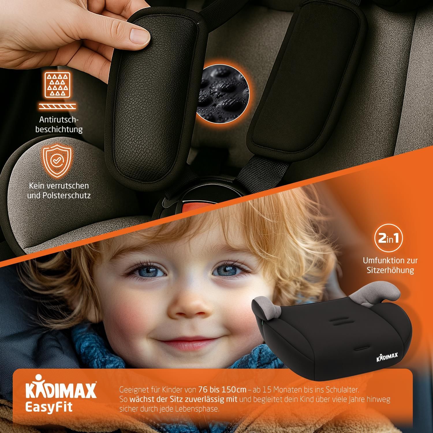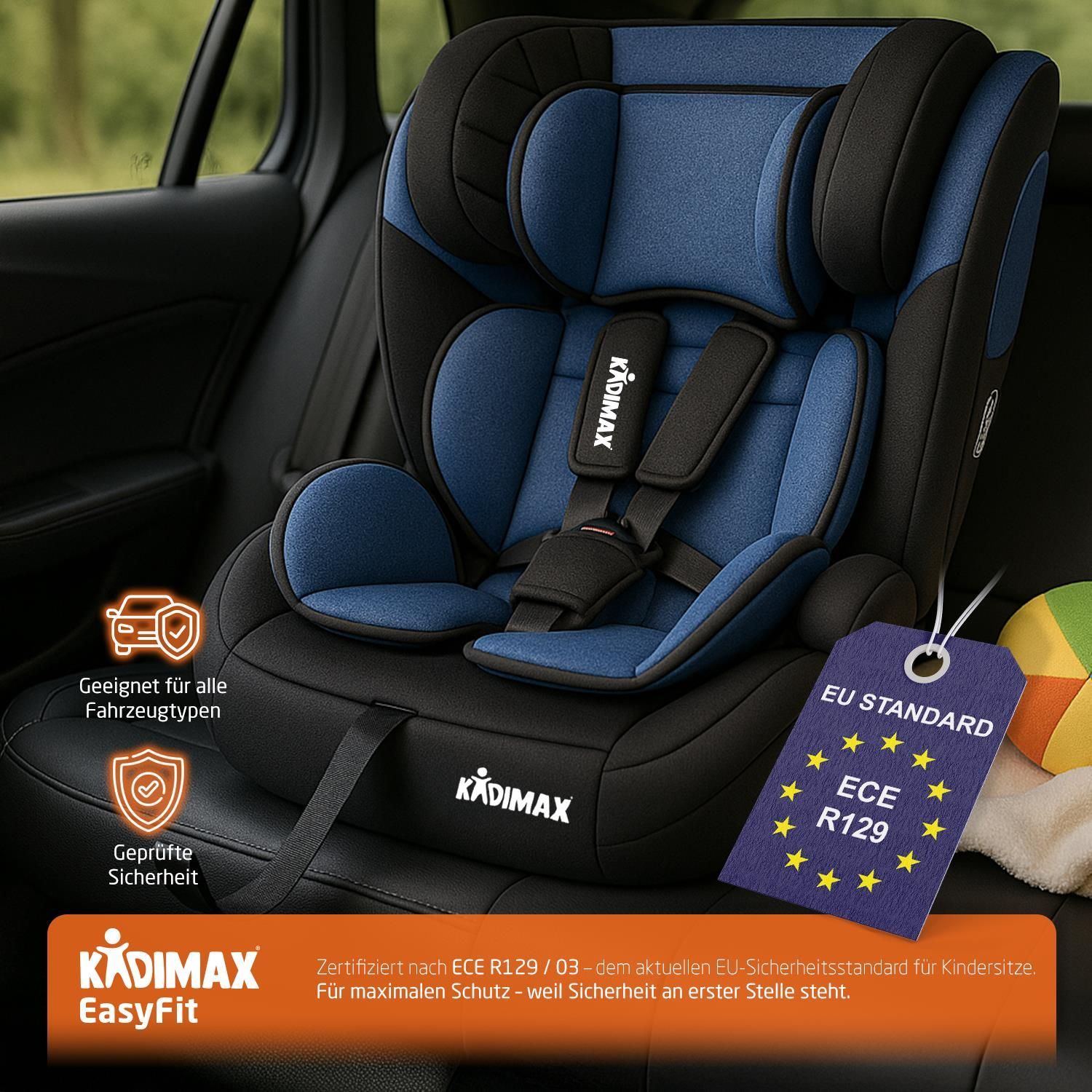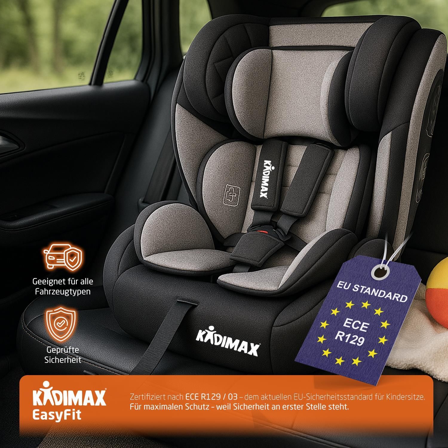 Kidimax® Kindersitz EasyFit 9–36 kg, ECE R129/03, mitwachsend, ohne Isofix