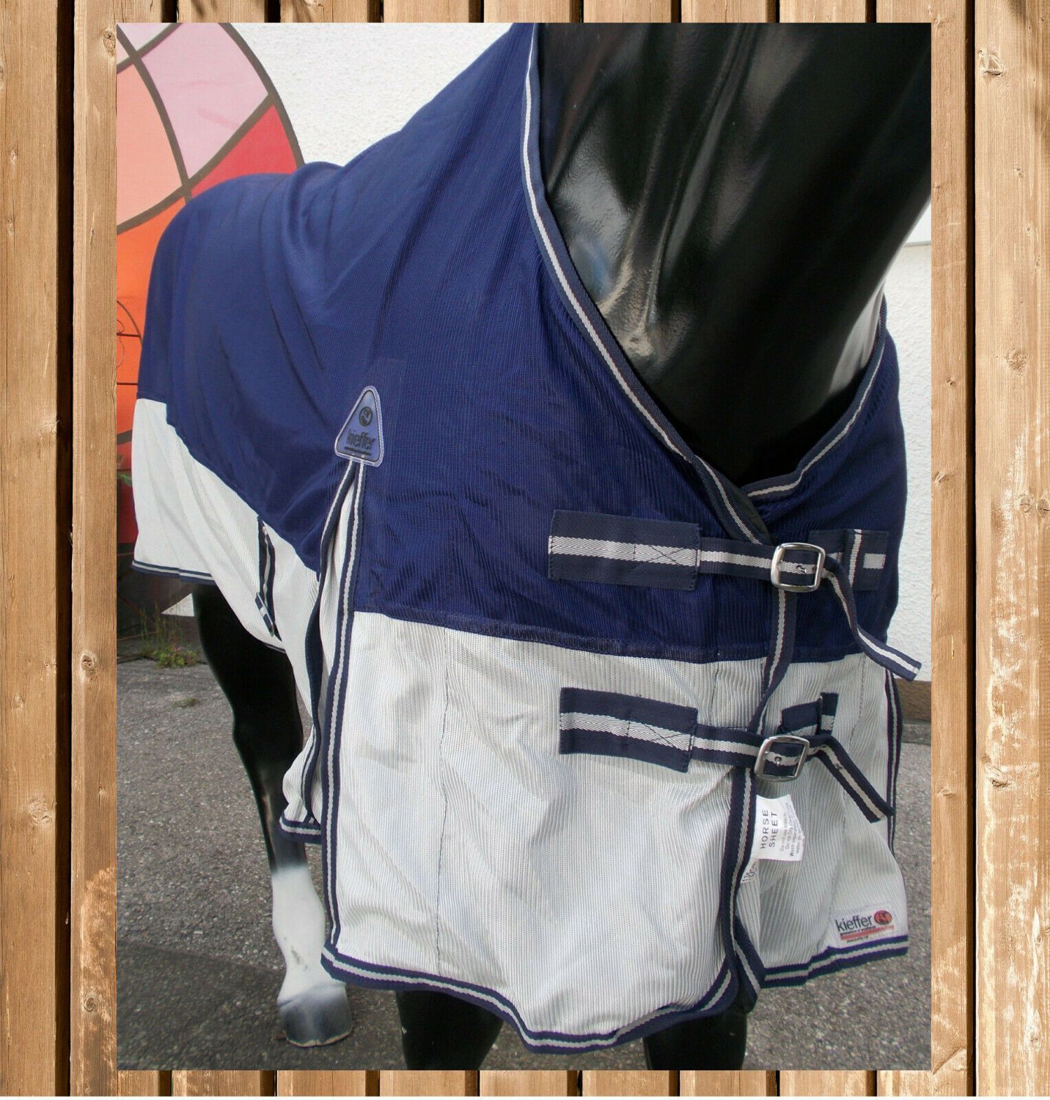 Kieffer Fliegendecke MALAGA · Weiches und zugleich starkes Netzmaterial aus Polyester · Kreuzbegurtung · Gehfalte für mehr Bewegungsfreiheit · Vorderverschluss mit 2 einstellbaren Schnallen · Schweifriemen · Ösen für Beinschnüre (Beinschnüre nicht vorhanden)