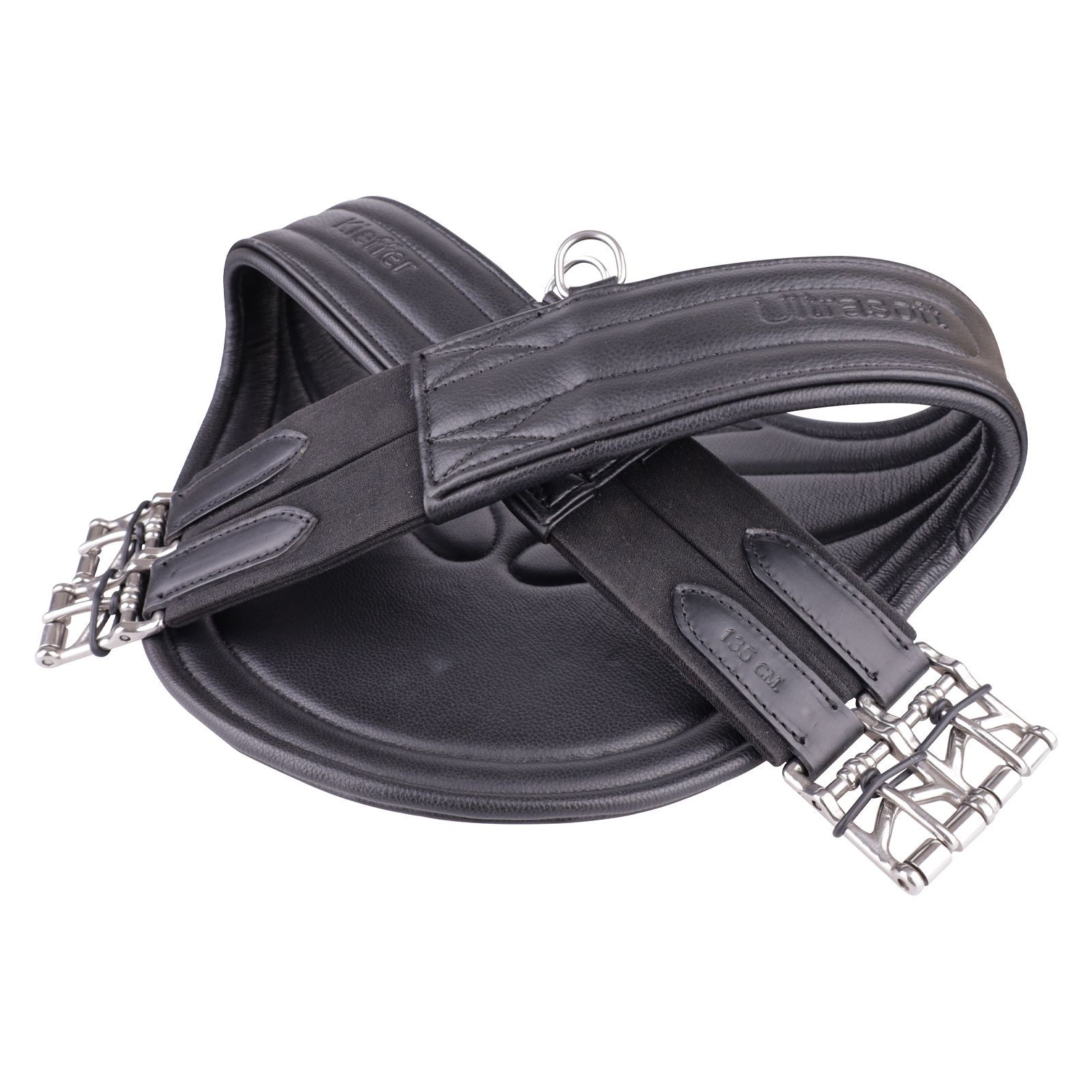 Stollenschutzgurt aus Leder mit weich gepolstertem Bauchlatz, beidseitigen Elastikeinsätzen, Ringen für Hilfszügel und mittig angebrachtem Karabinerhaken für das Vorderzeug. Aus Qualitätsleder mit ultrasofter Unterlegung Beidseitig mit Elastik Edelstahlbeschläge Farbe: schwarz Größe: 125 cm 130 cm 1