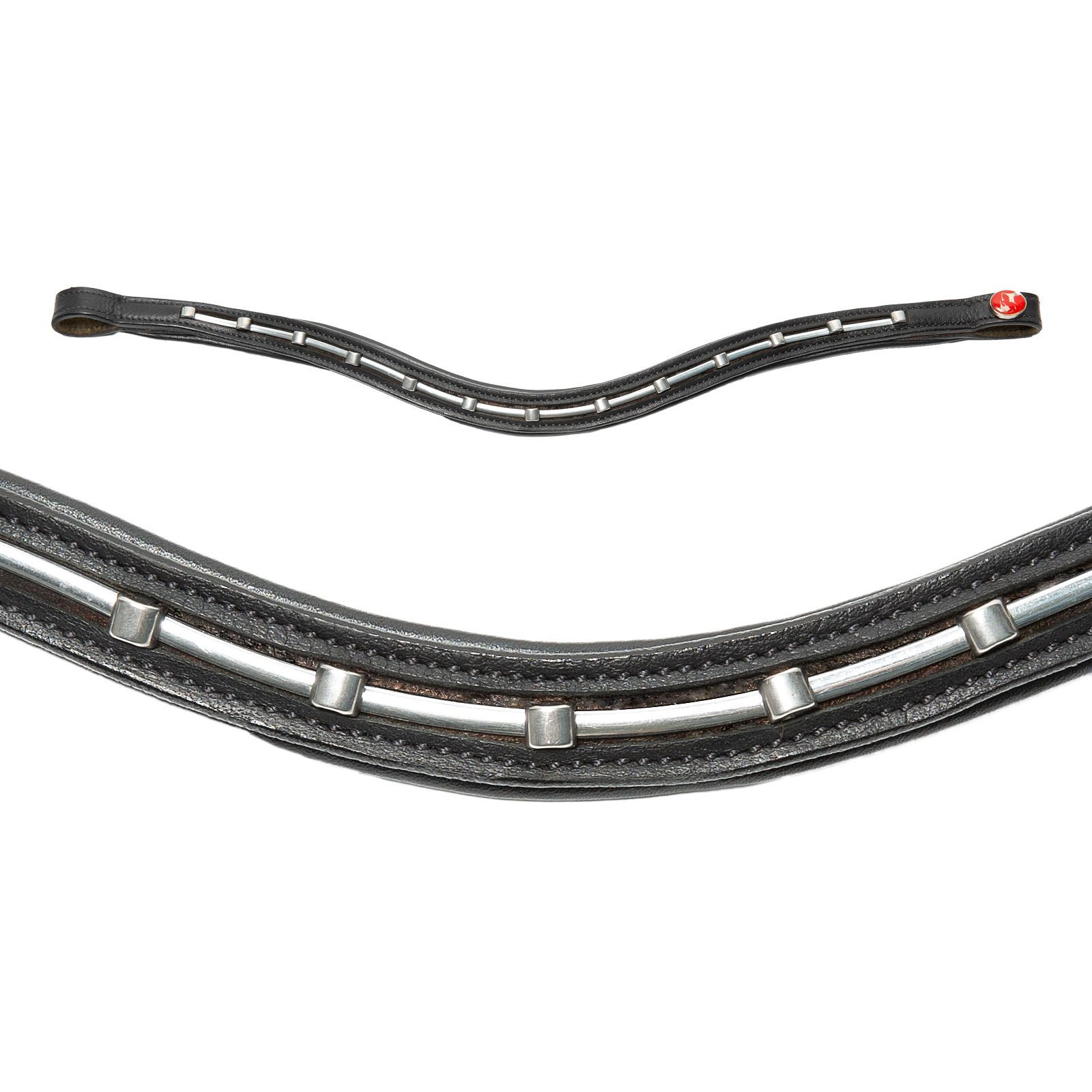 Der englisch kombinierte Zaum Trensenzaum Kieffer Ultrasoft © Economy II mit seinem geschwungenen Stirnband verziert mit einer silberfarbenen Kette eignet sich für alle, die einen unaufdringlichen, gut kombinierbaren Zaum mit pferdefreundlichen Eigenschaften suchen. Durch das breiter geschnittene, a