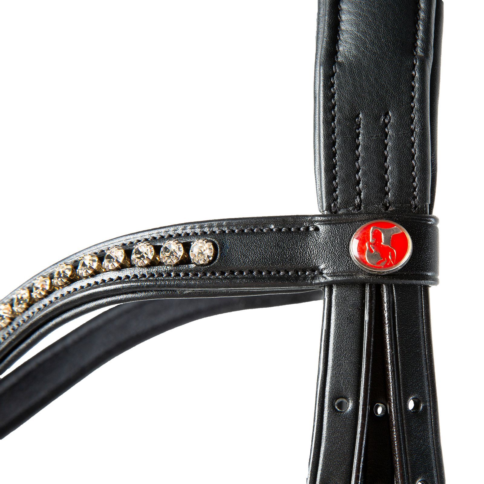 Kieffer Ultrasoft ® Sue ergänzt unsere Ultrasoft-Familie um einen Zaum mit englischem Reithalfter für alle Reiter, die auf den Einsatz eines Sperrriemens verzichten möchten. Mit Hilfe des breiter geschnittenen, anatomisch geformten Kopfstücks wird der Druck im Genick vermindert und gleichzeitig ist