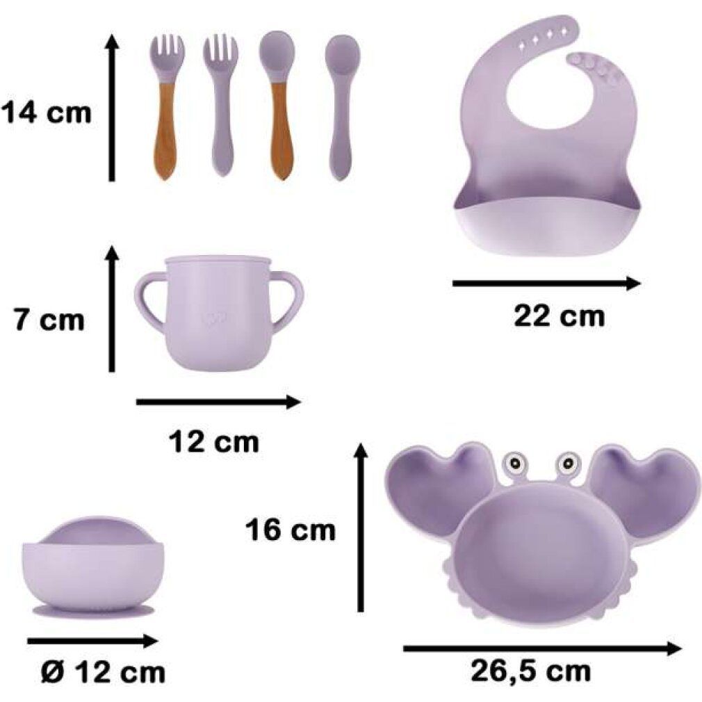 KIK KIK Silikon-Geschirr-Set für Kinder Krabbe 9 Stück - lila