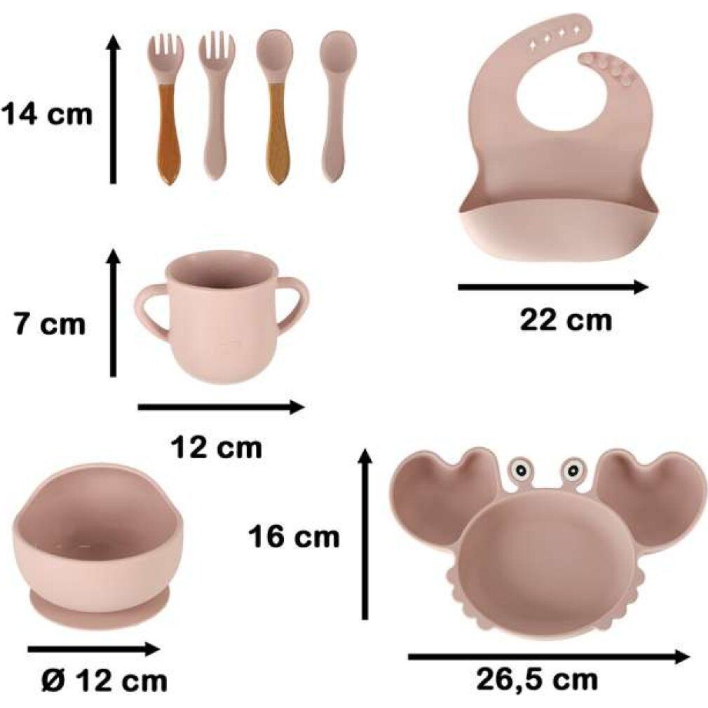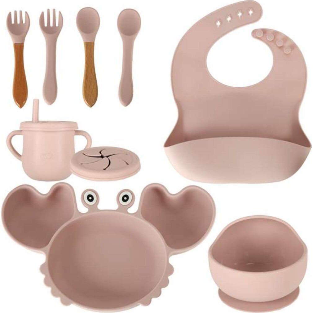 KIK KIK Silikongeschirr für Kinder Krabbe 9 Stück - rosa
