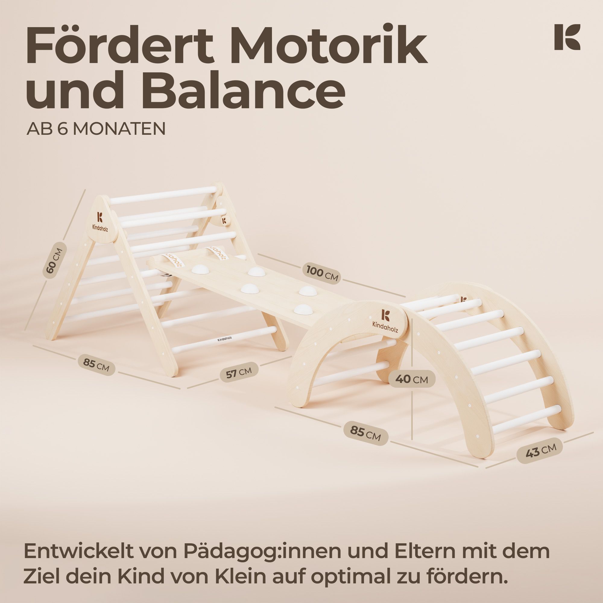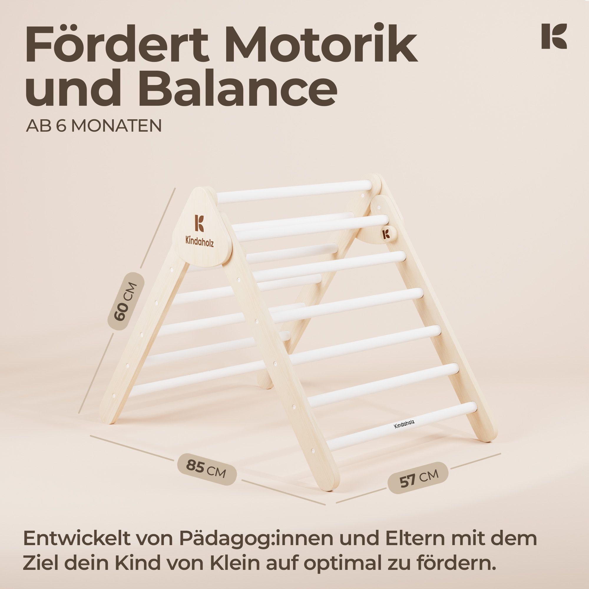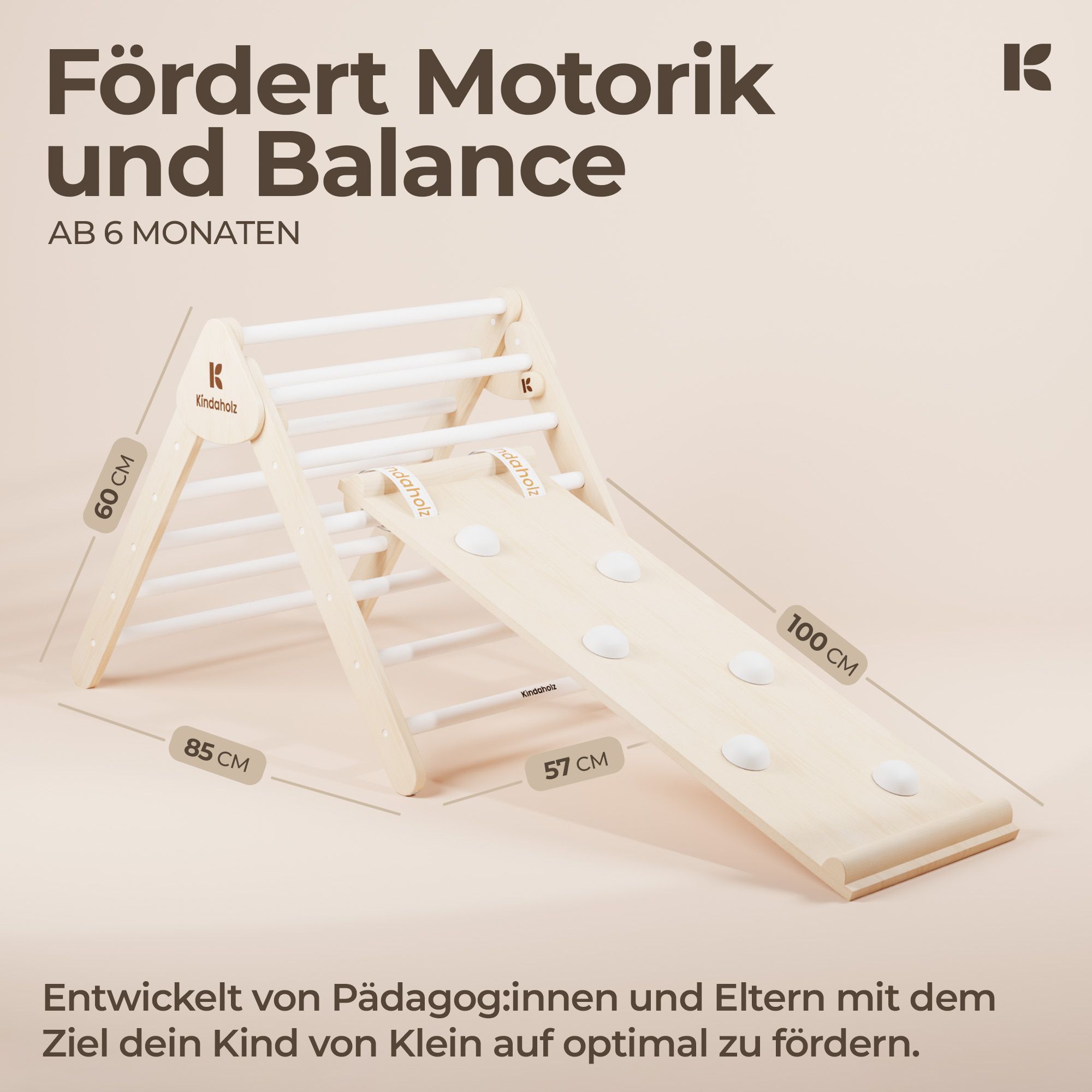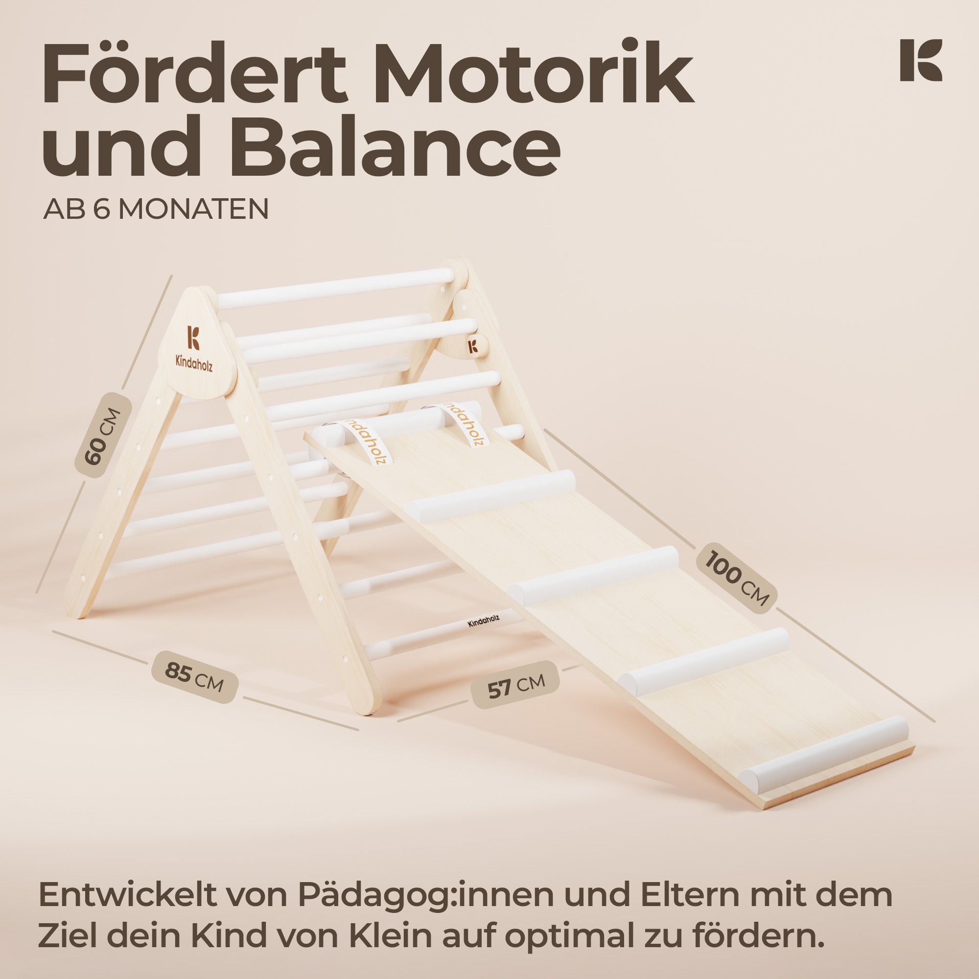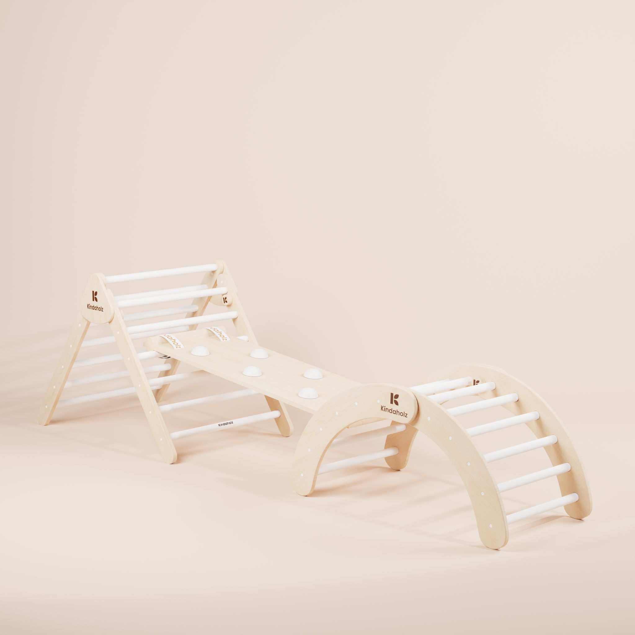 Kindaholz 5in1 Pikler Kletterdreieck mit 2-in-1 Rutsche