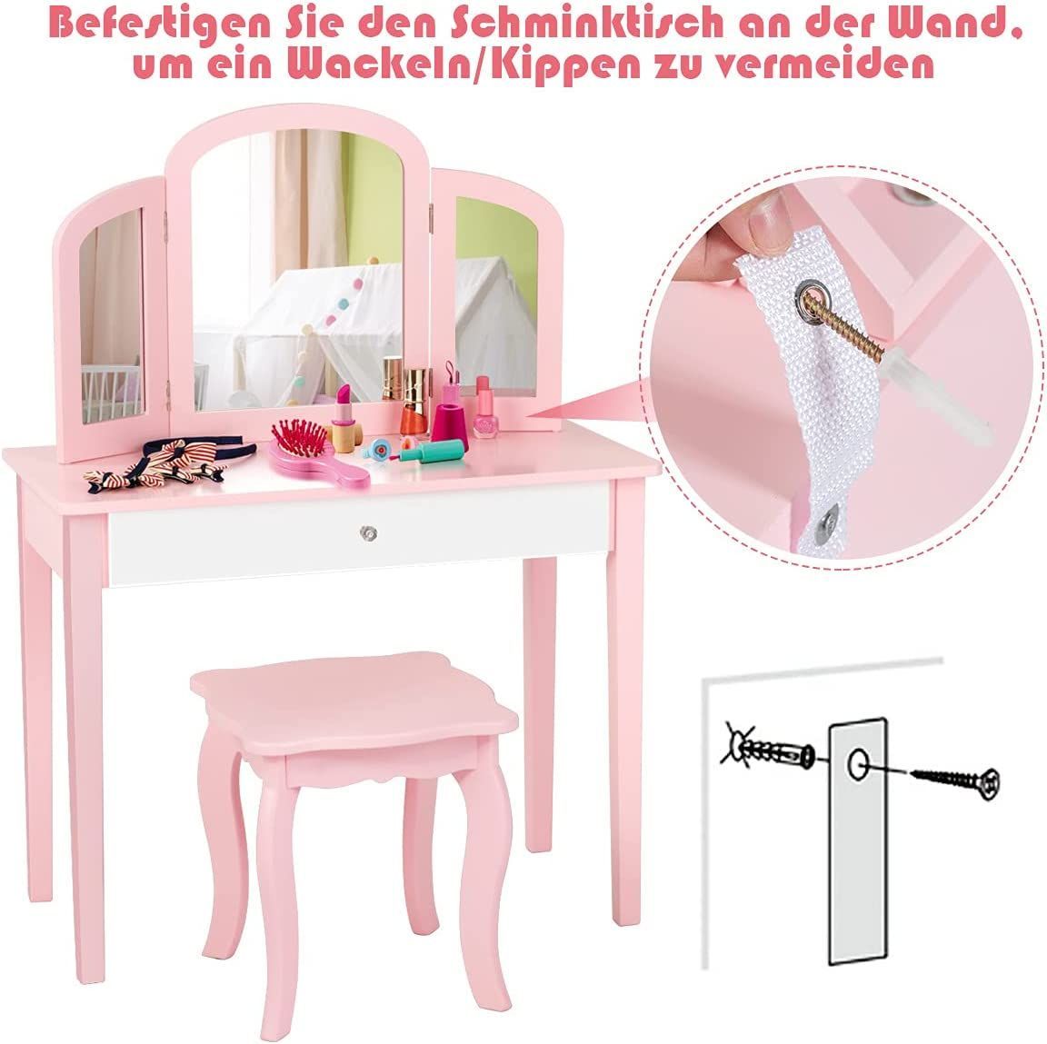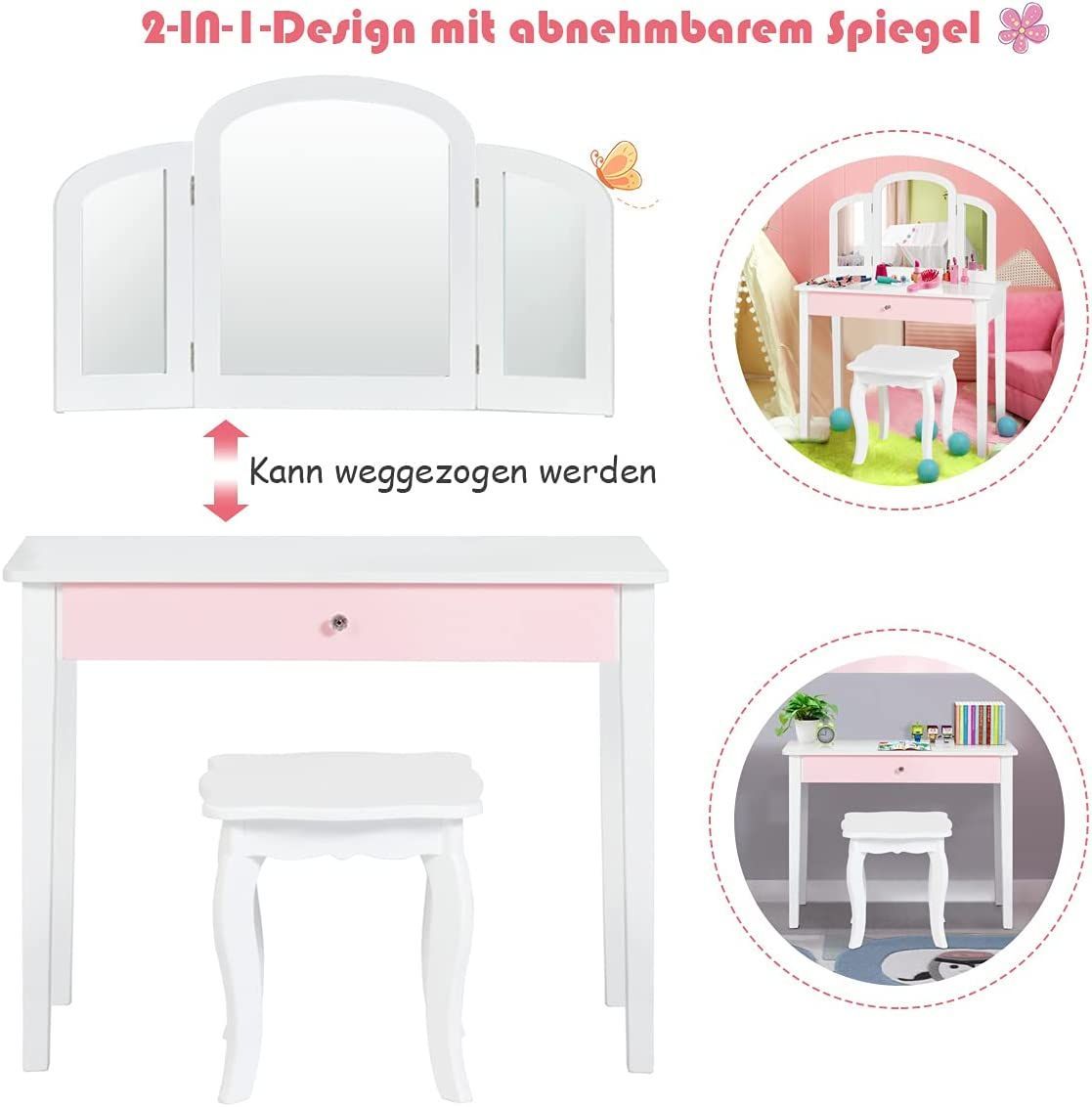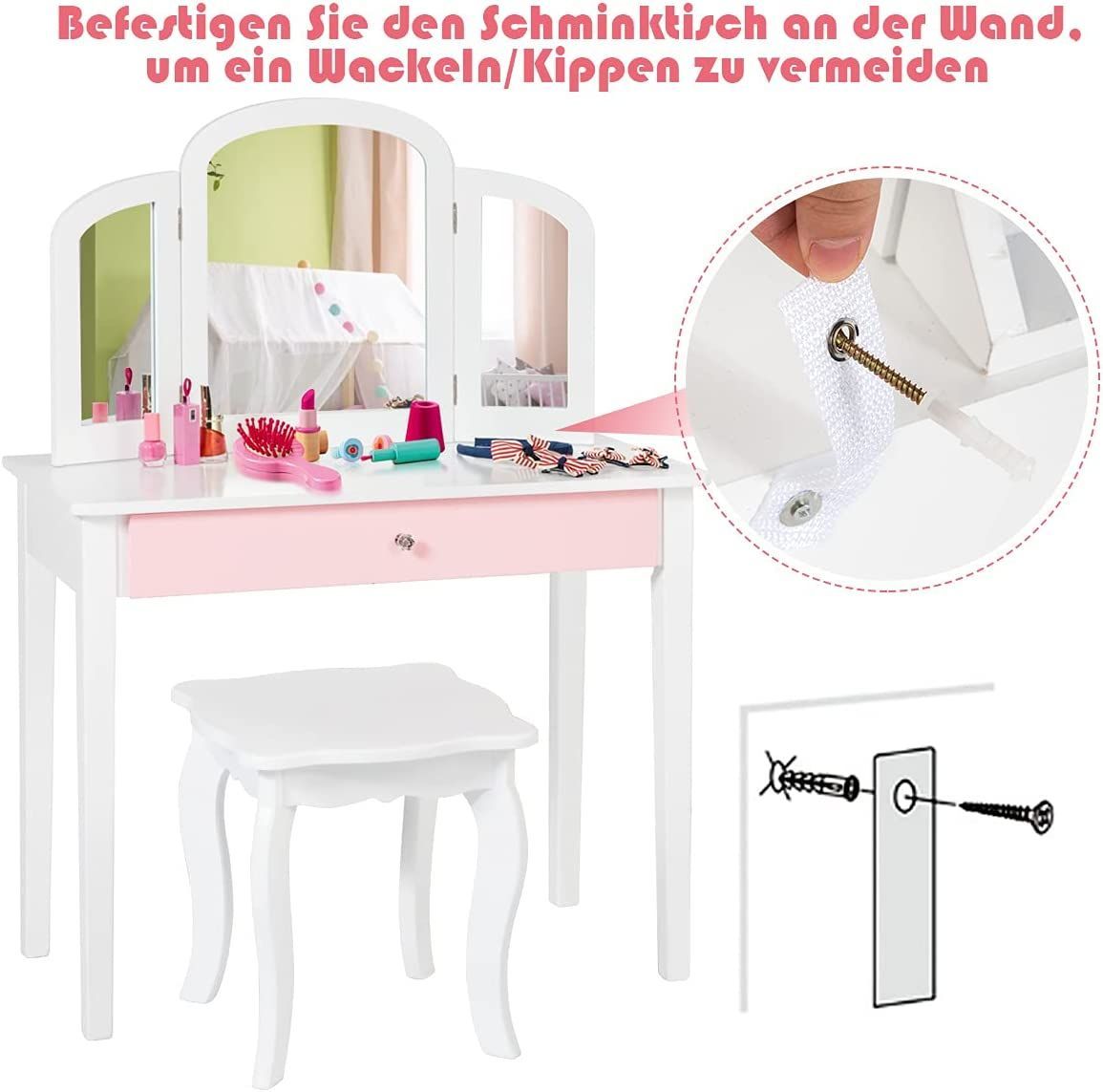 Kinder 2 in 1 Schminktisch Set Frisiertisch mit dreifach klappbarem Spiegel Schublade