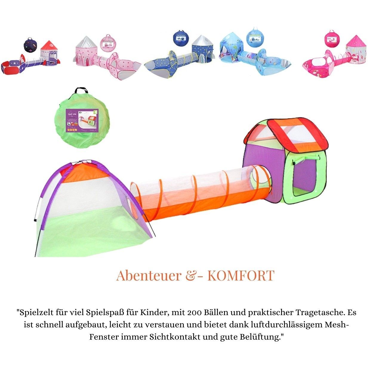 Kinder 3-in-1 Spielzelt mit Tunnel - Indoor Spielhaus, 3-teiliges Set (ohne Bälle)