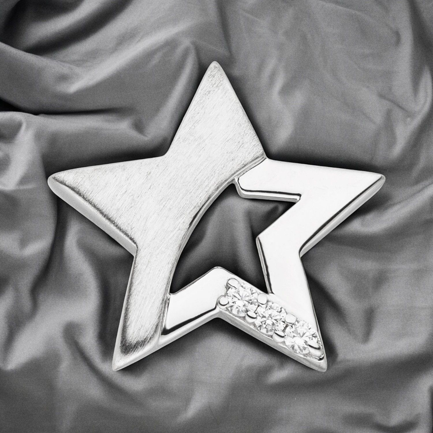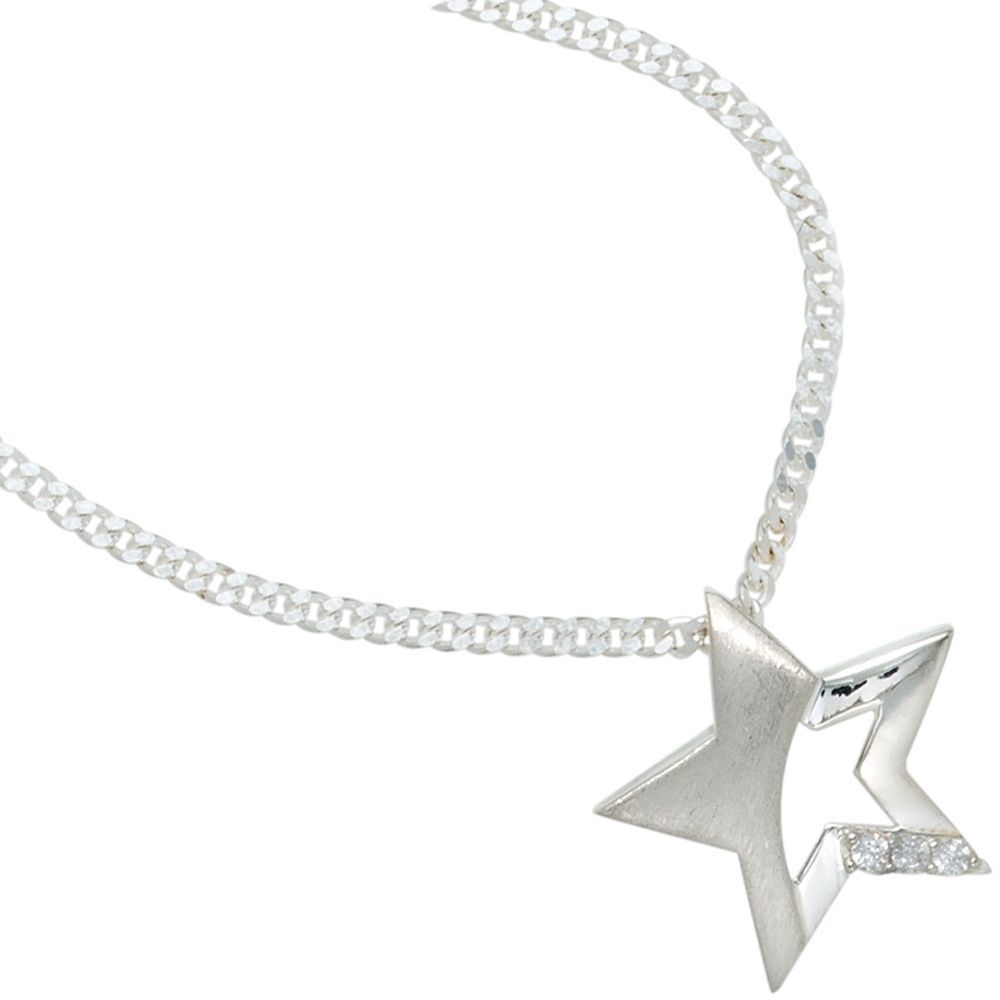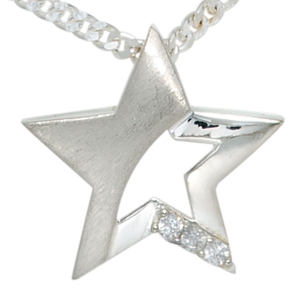 JOBO Kinder Anhänger Stern 925 Sterling Silber mattiert 3 Zirkonia Kinderanhänger