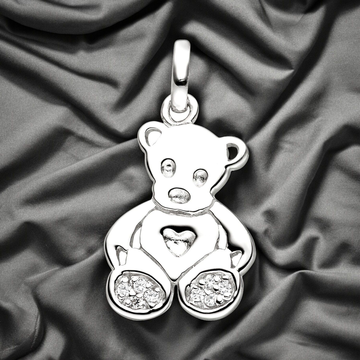 JOBO Kinder Anhänger Teddy Teddybär 925 Sterling Silber 8 Zirkonia Kinderanhänger