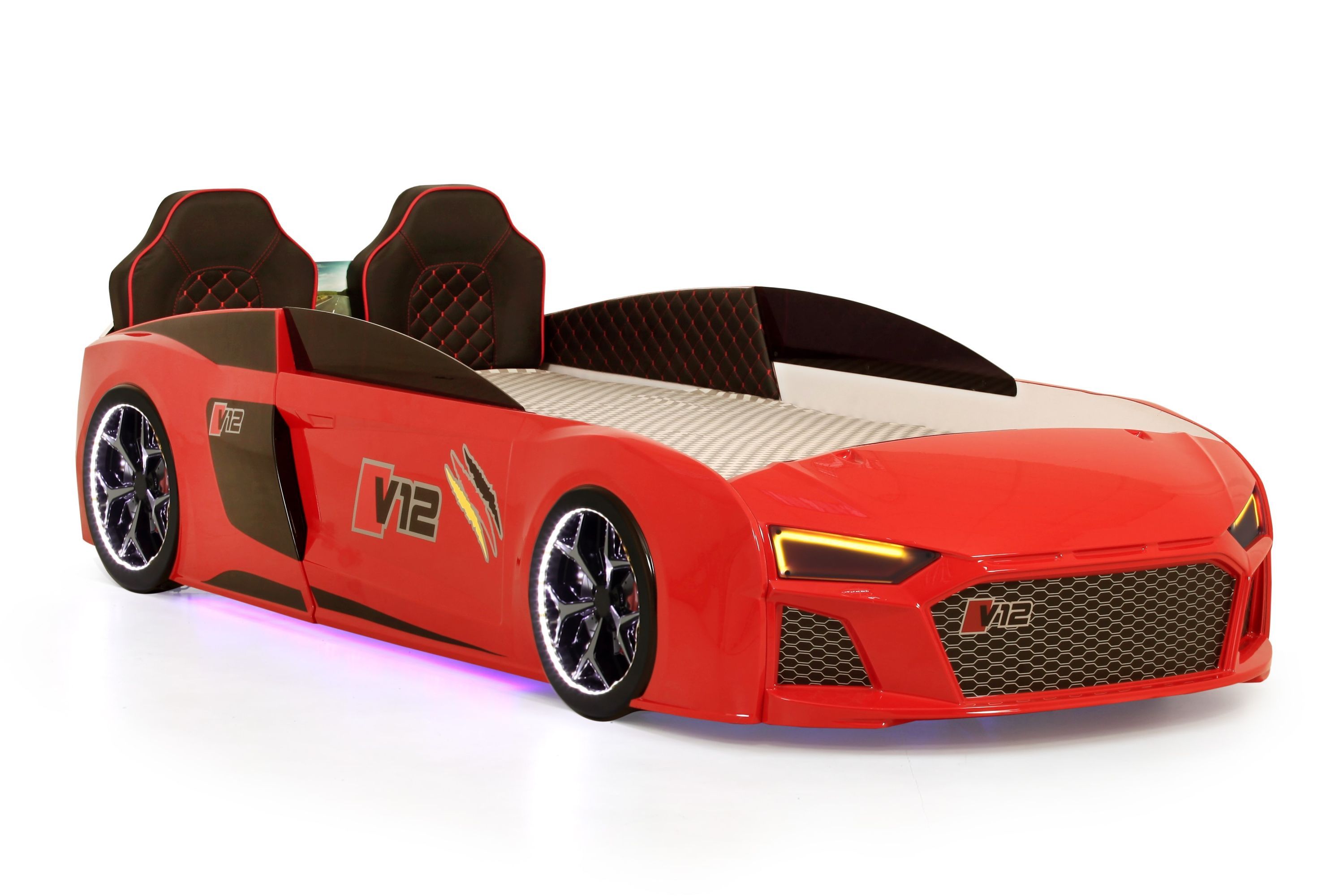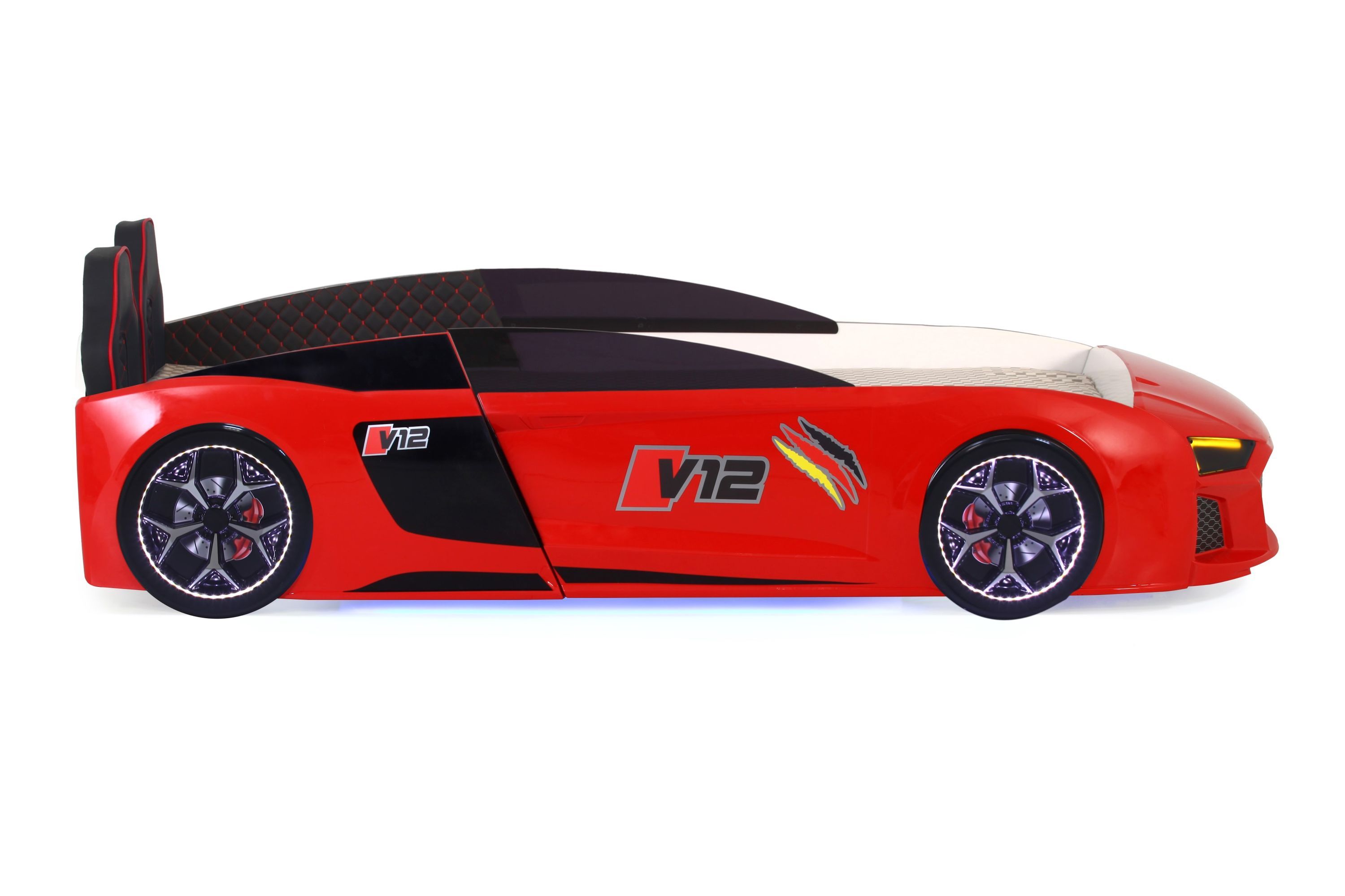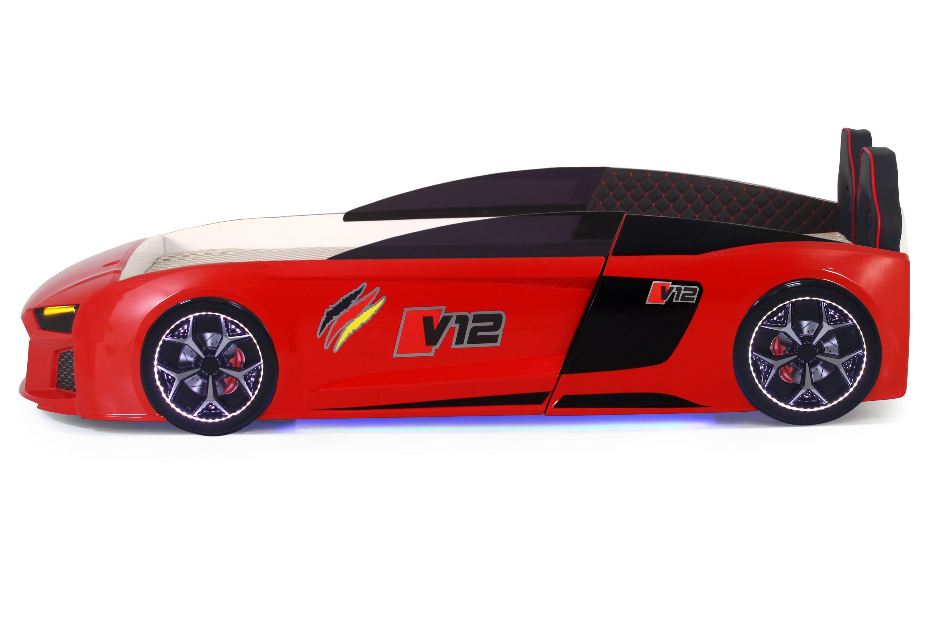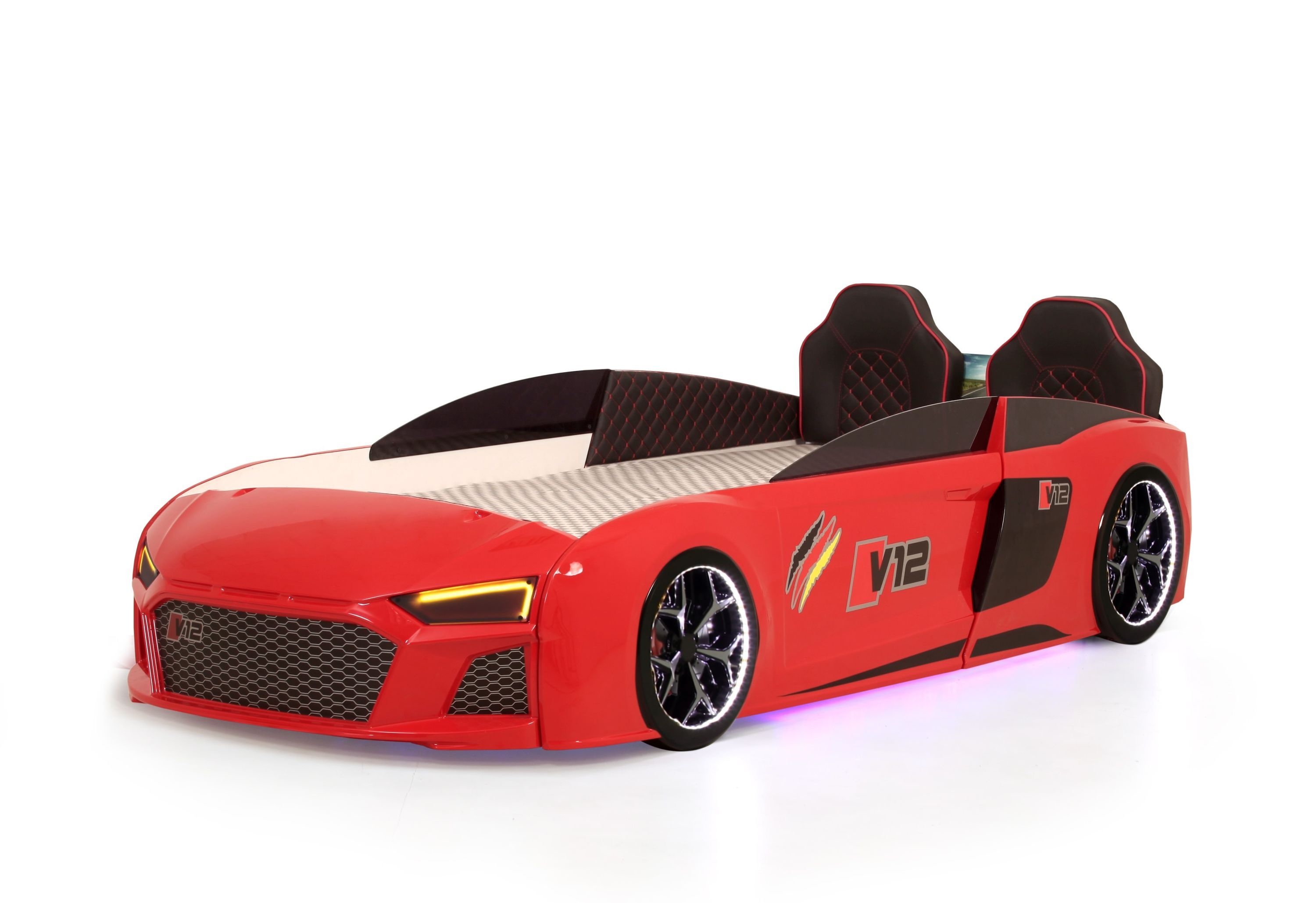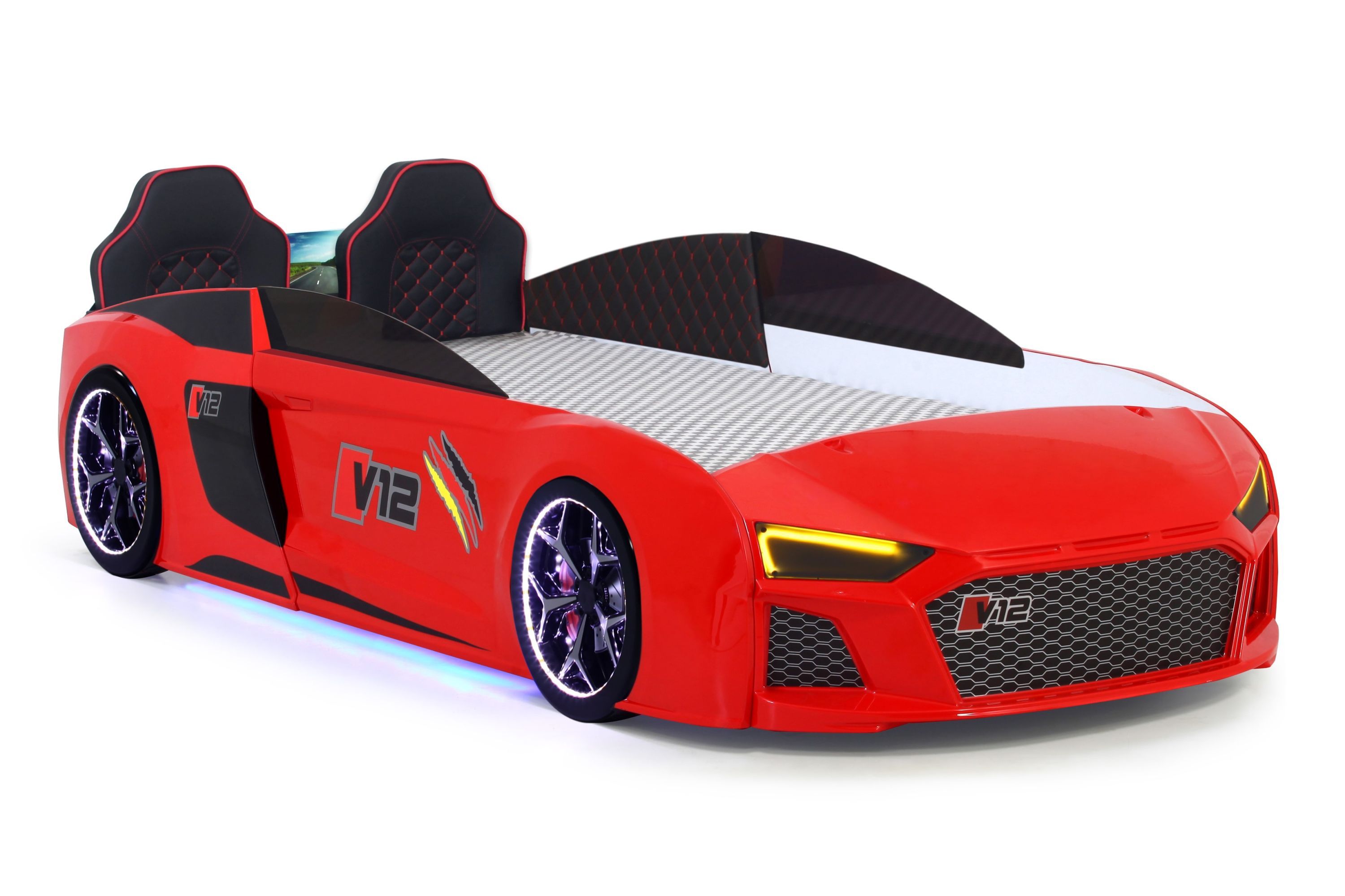 Kinder Autobett V12 Full mit Sound & LED Scheinwerfer Rot