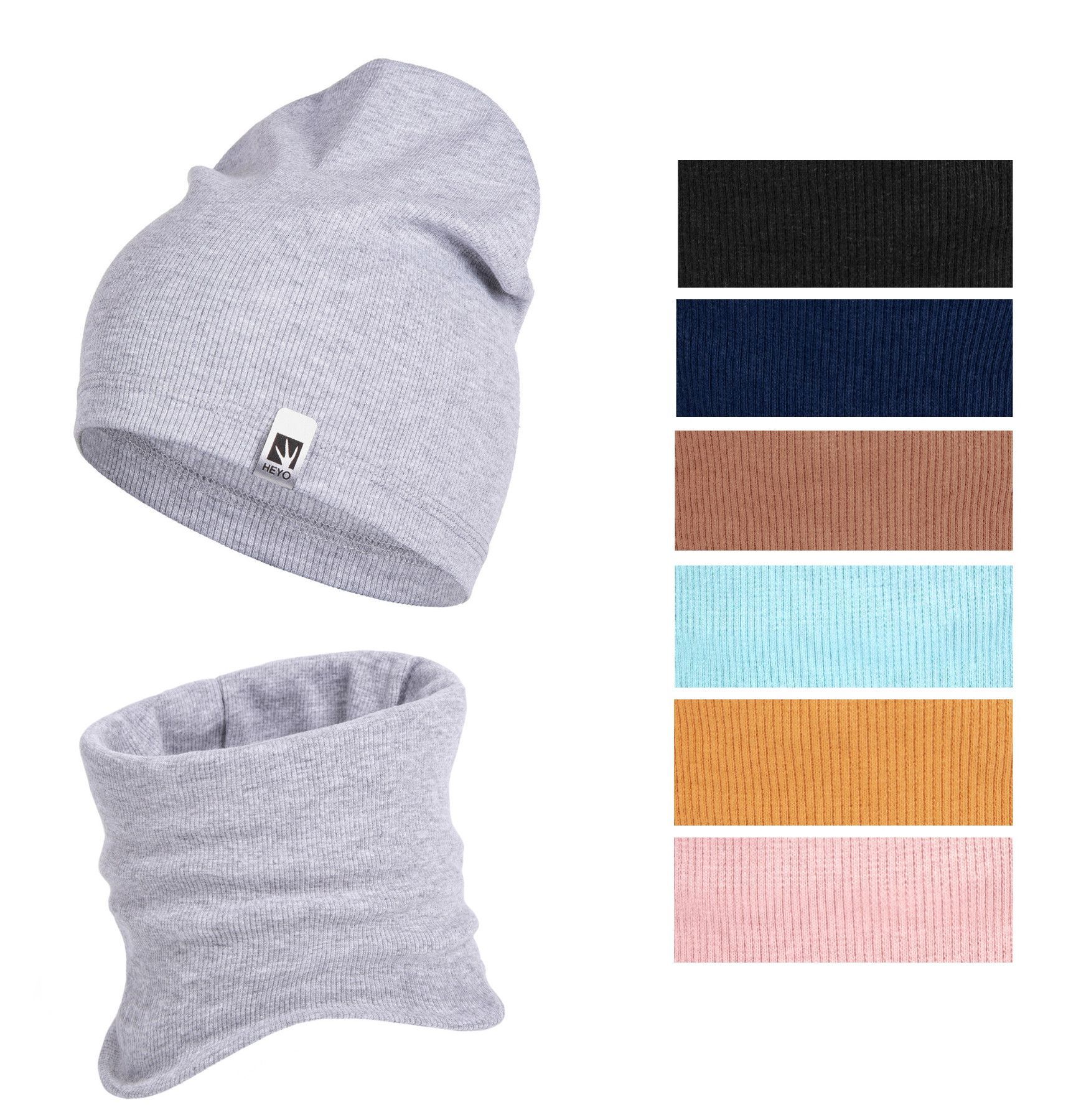 Kinder Beanie Mütze Schlauchschal Set für Mädchen Jungen Frühling Strickmütze Schal
