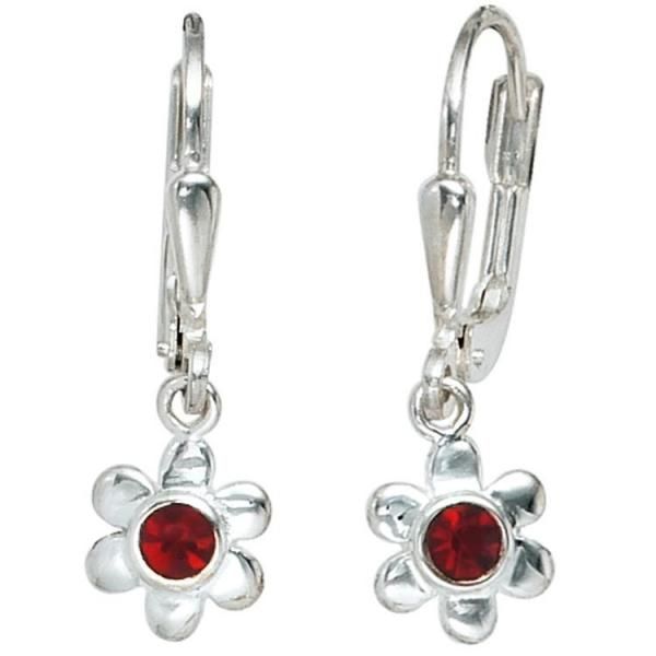 JOBO Kinder Boutons Blume 925 Silber 2 rote Glassteine Ohrringe Ohrhänger
