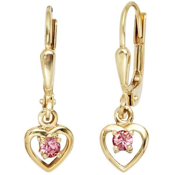 JOBO Kinder Boutons Herz 333 Gold Gelbgold 2 Glassteine rosa rosé Ohrringe