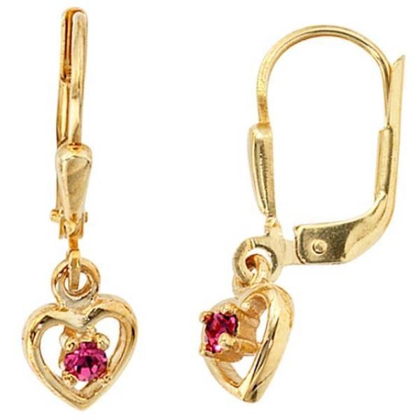 • Kinder Boutons Blume 333 Gold Gelbgold 2 Rubine rot Ohrringe Ohrhänger
