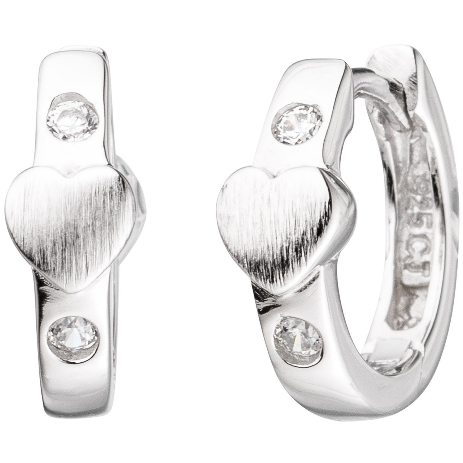 Kinder Creolen Herz 925 Silber mattiert 4 Zirkonia Ohrringe Kinderohrringe