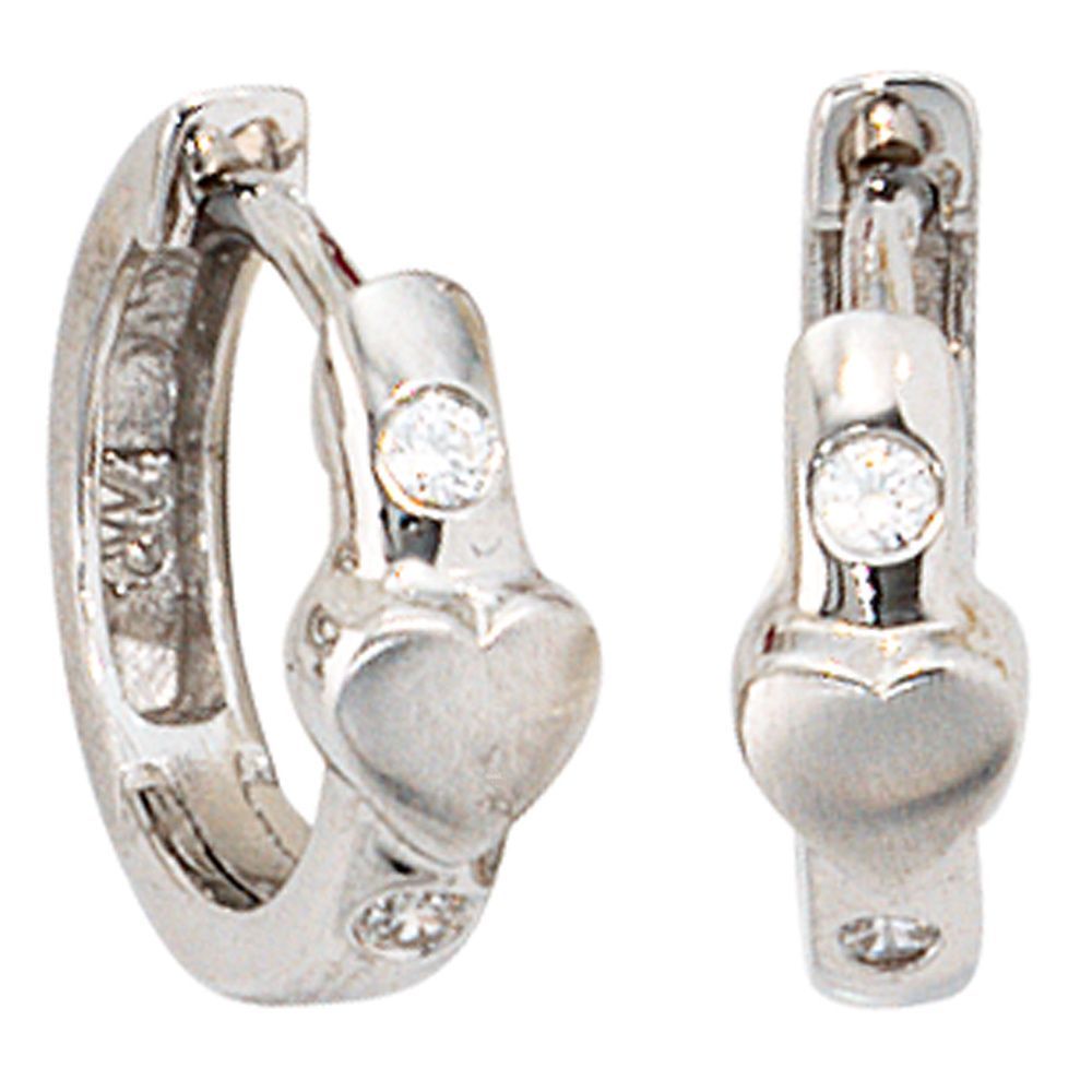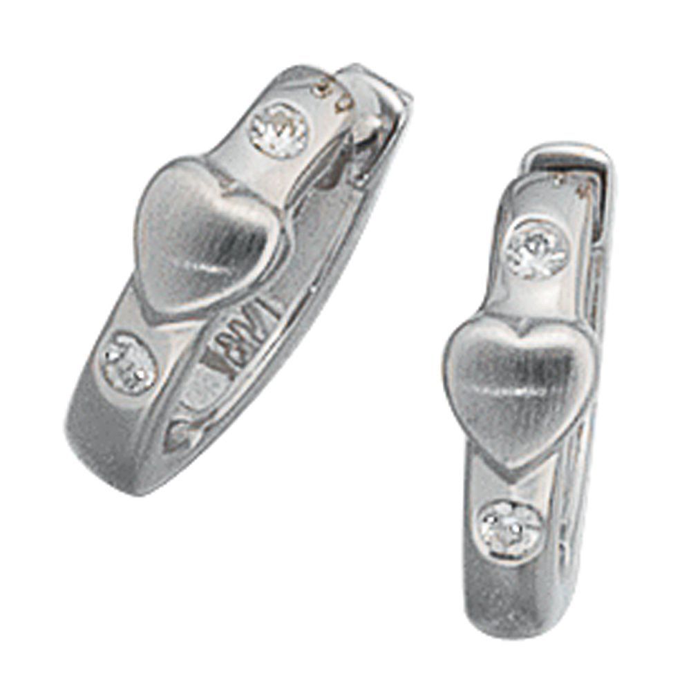JOBO Kinder Creolen Herz 925 Silber mattiert 4 Zirkonia Ohrringe Kinderohrringe