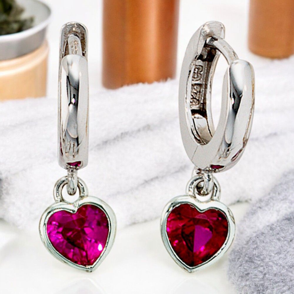 JOBO Kinder Creolen Herz 925 Sterling Silber 2 Zirkonia rot Ohrringe Kinderohrringe
