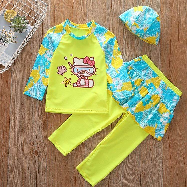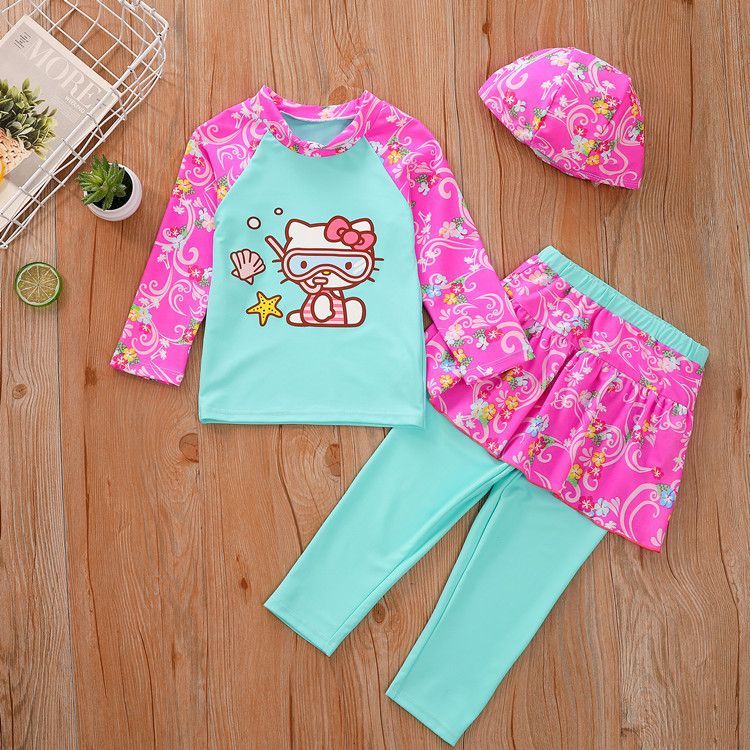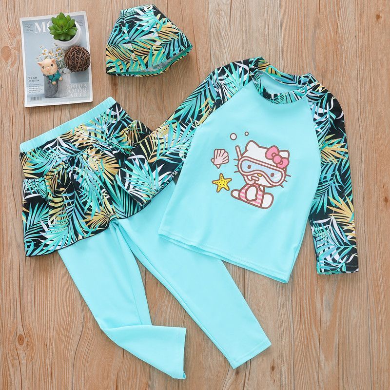 Kinder Cute Kitty Zweiteiliger Badeanzug Mädchen beach Swimsuit Cartoon Rashguard