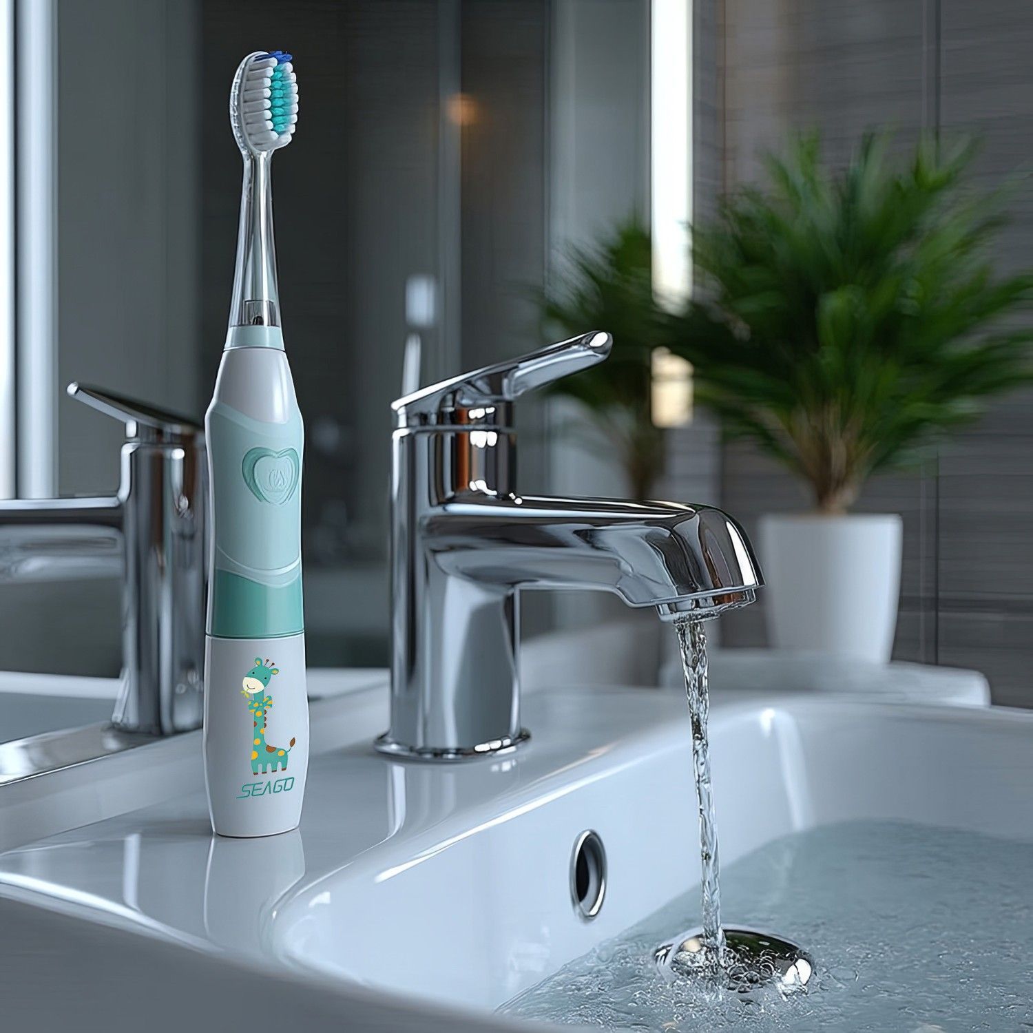 Kinder Elektrische Schallzahnbürste Wasserdicht LED-Mundlicht Timer Grün