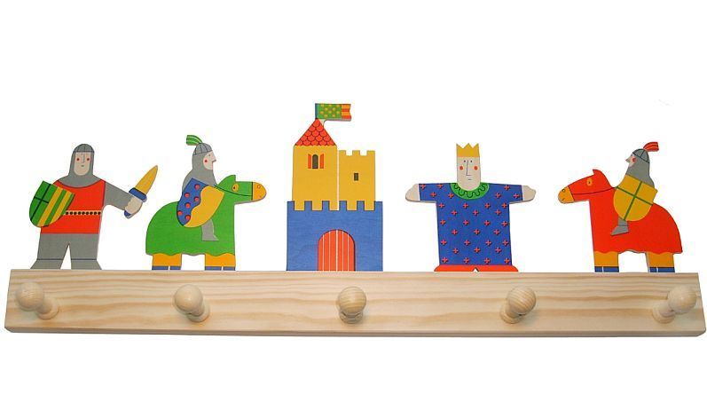 Kinder-Garderobe Ritter Ritterburg, Holz, 5 Haken 50cm, Kinderzimmer, Heller 331 NEU