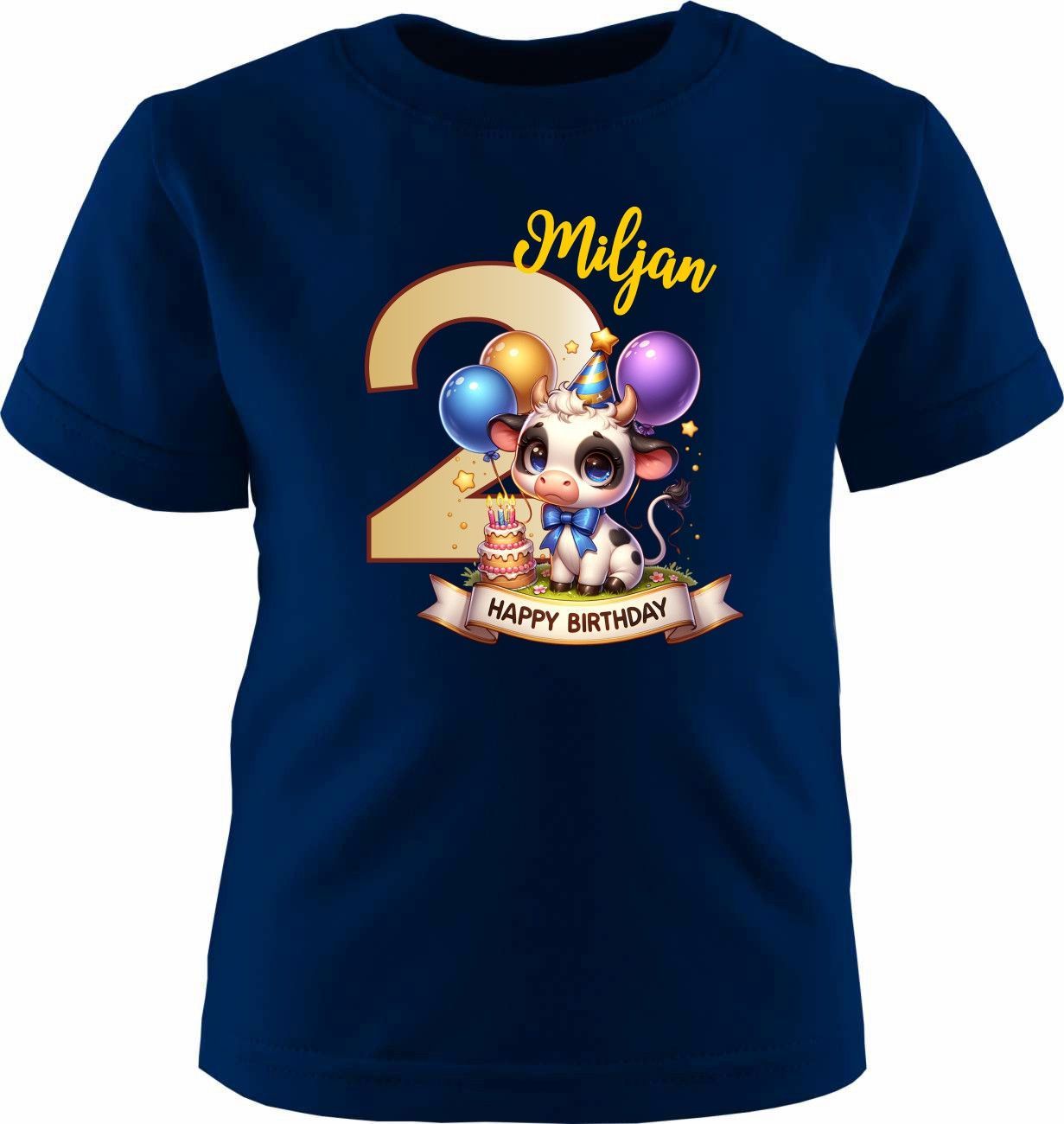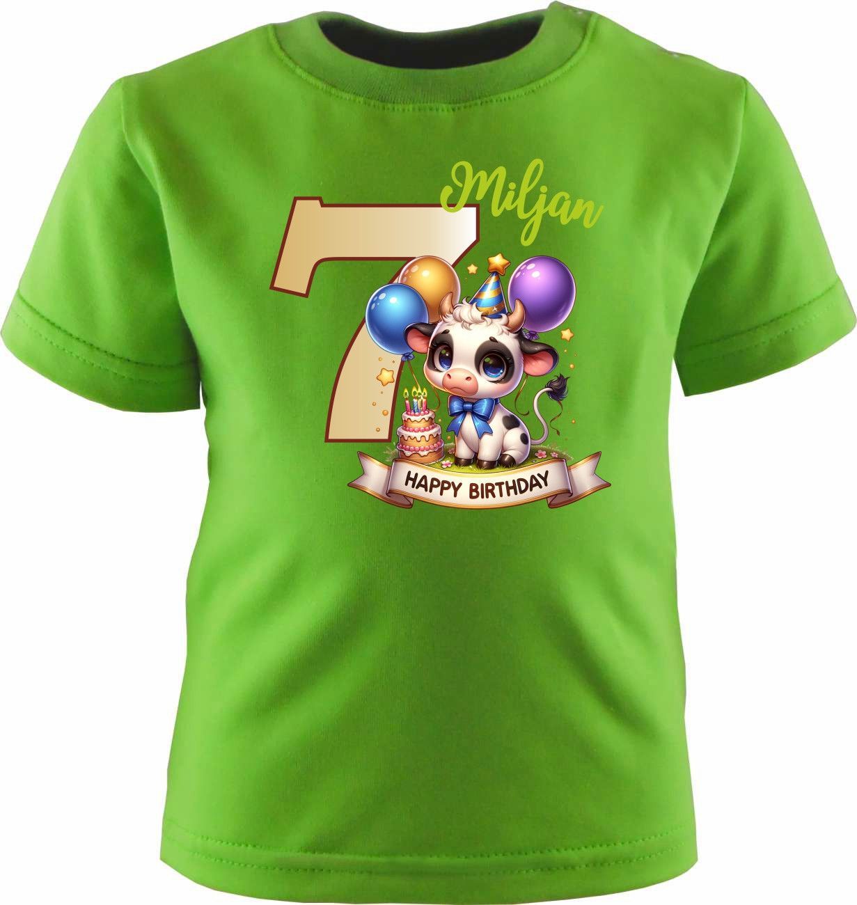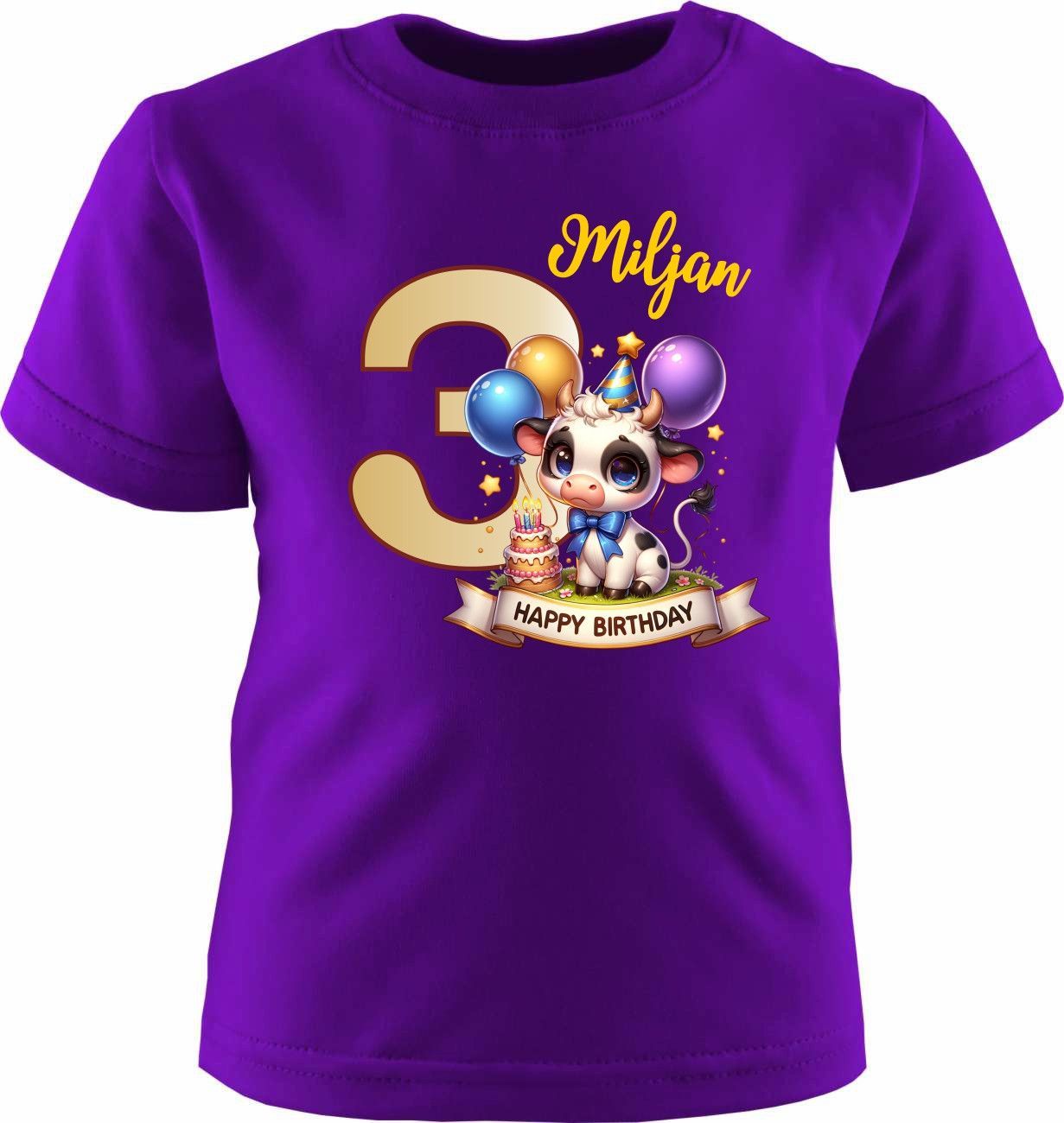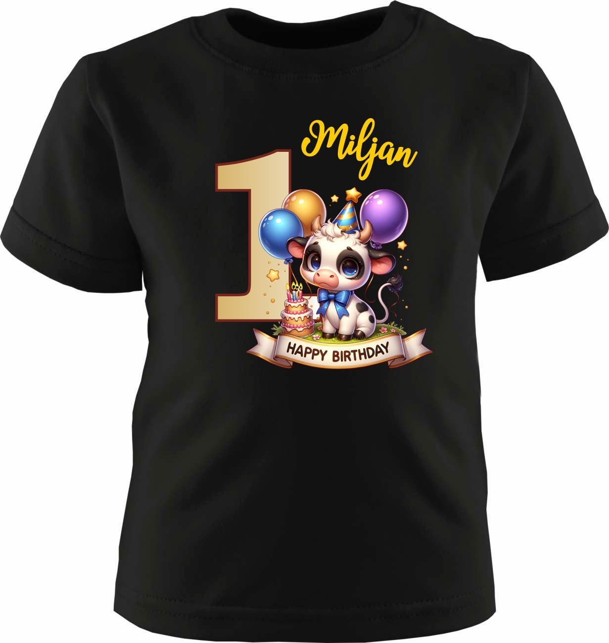 Kinder Geburtstagsshirt kurzarm HAPPY Birthday KUH mit Namen und Geburtstagszahl