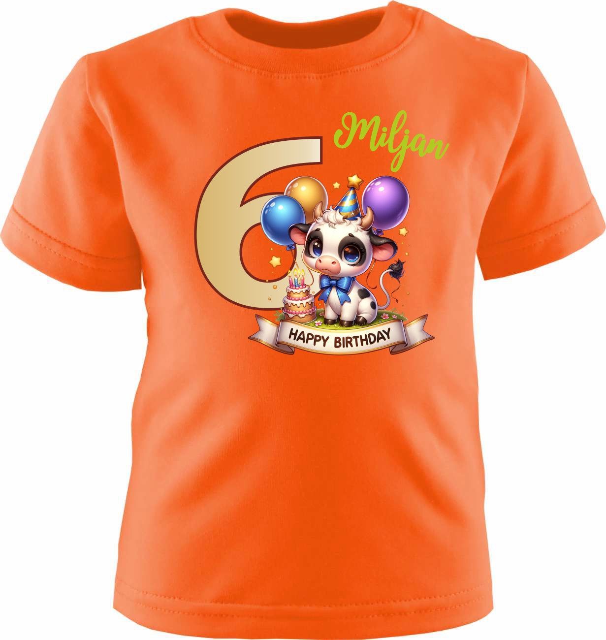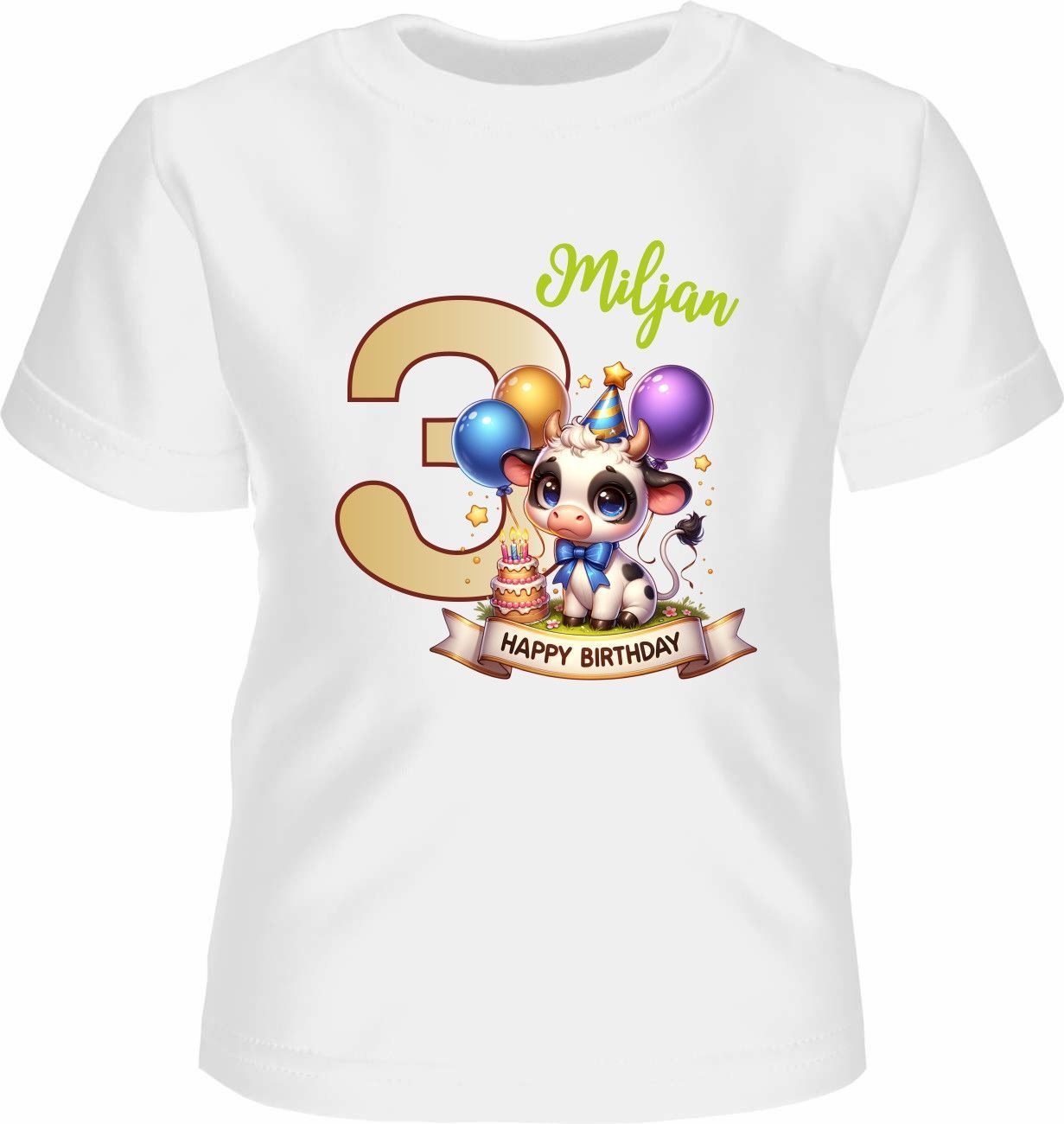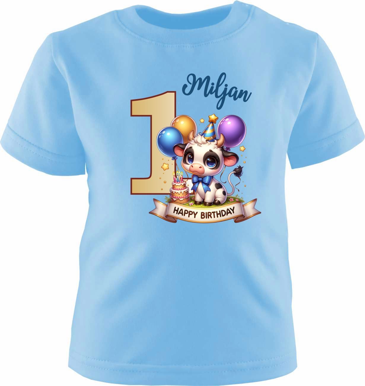 Kinder Geburtstagsshirt kurzarm HAPPY Birthday KUH mit Namen und Geburtstagszahl